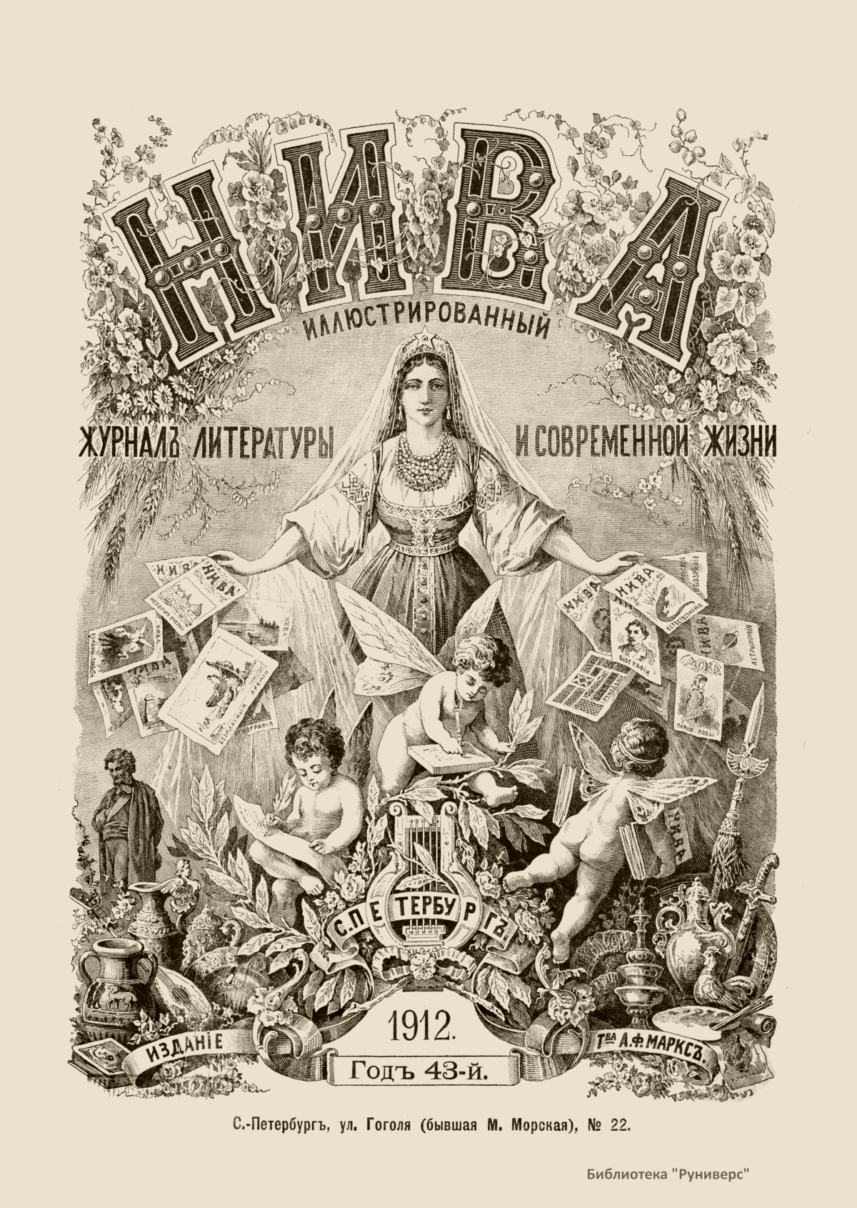 «Нива» — популярный еженедельный русский журнал с приложениями, издававшийся со второй половины XIX до начала XX века, носил подзаголовок «Журнал литературы, политики и современной жизни». Журнал был любимым детищем А. Ф. Маркса, возглавлявшего свое издательство вплоть до своей смерти в 1904 г. Позиционировалась «Нива» как иллюстрированный журнал для семейного чтения и был ориентирован, главным образом, на обывателя. В журнале публиковались литературные произведения, исторические, научно-популярные очерки, репродукции и гравюры картин современных художников. Материалы политического и общественного содержания также сопровождались многочисленными иллюстрациями. Среди известных литераторов, печатавшихся в журнале, были А. К. Толстой, Ф. И. Тютчев, Л. Н. Толстой, А. А. Фет, А. П. Чехов, Максим Горький, Корней Чуковский, Анна Ахматова, Иван Бунин и многие другие. Благодаря «Ниве» сочинения многих современных авторов добрались до самых отдаленных областей России.