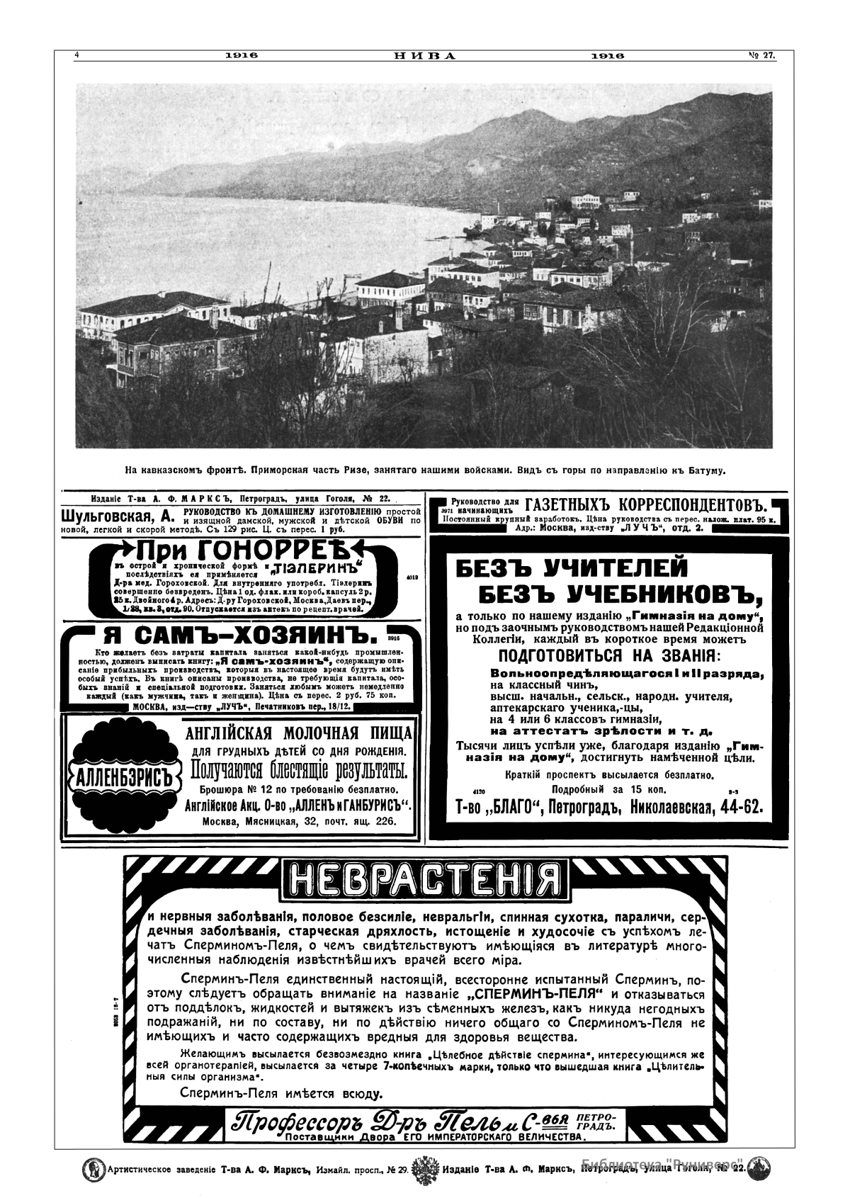 «Нива» — популярный еженедельный русский журнал с приложениями, издававшийся со второй половины XIX до начала XX века, носил подзаголовок «Журнал литературы, политики и современной жизни». Журнал был любимым детищем А. Ф. Маркса, возглавлявшего свое издательство вплоть до своей смерти в 1904 г. Позиционировалась «Нива» как иллюстрированный журнал для семейного чтения и был ориентирован, главным образом, на обывателя. В журнале публиковались литературные произведения, исторические, научно-популярные очерки, репродукции и гравюры картин современных художников. Материалы политического и общественного содержания также сопровождались многочисленными иллюстрациями. Среди известных литераторов, печатавшихся в журнале, были А. К. Толстой, Ф. И. Тютчев, Л. Н. Толстой, А. А. Фет, А. П. Чехов, Максим Горький, Корней Чуковский, Анна Ахматова, Иван Бунин и многие другие. Благодаря «Ниве» сочинения многих современных авторов добрались до самых отдаленных областей России.