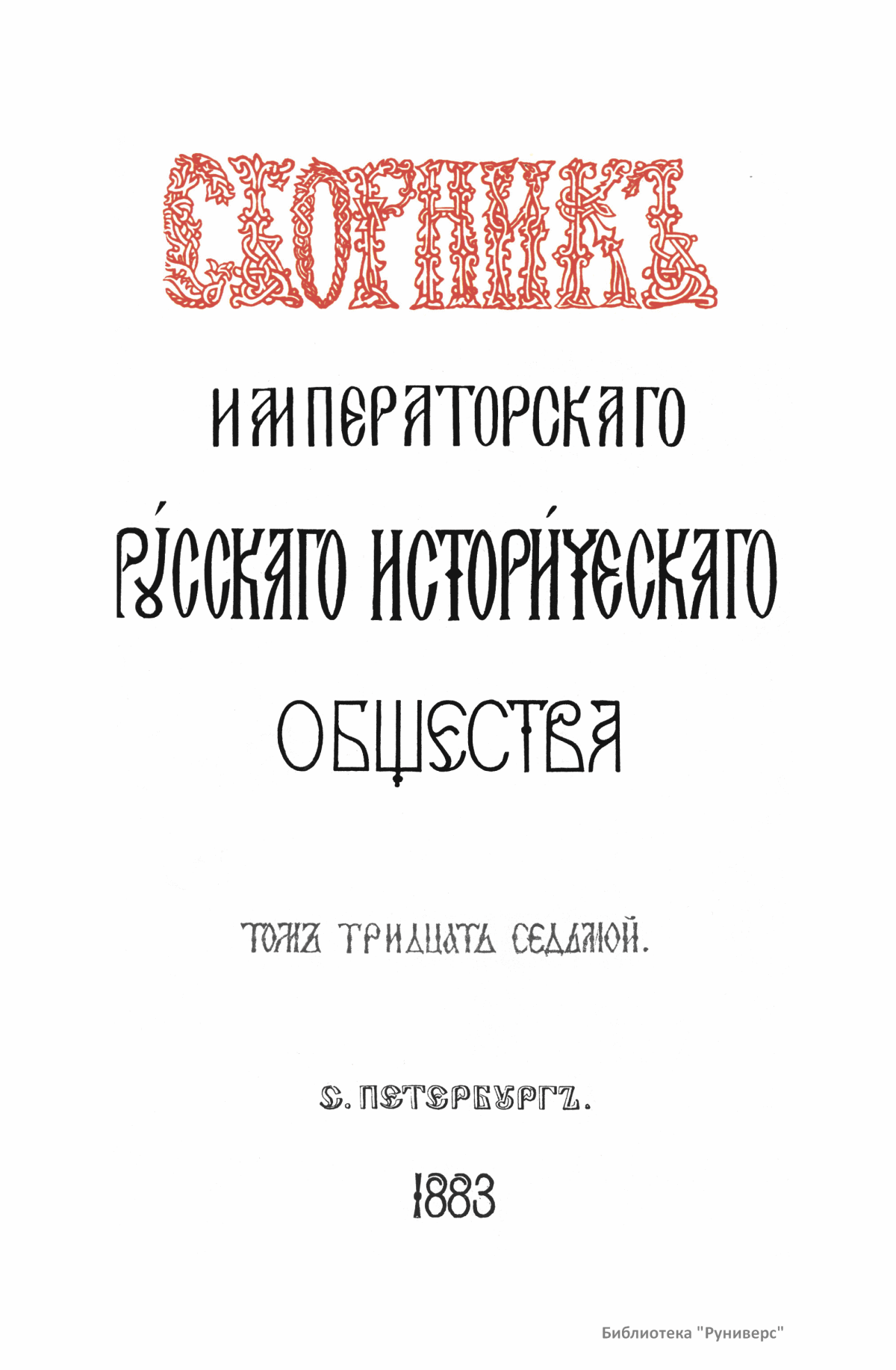 Сборникъ Русскаго историческаго общества. Томъ тридцать cедьмой