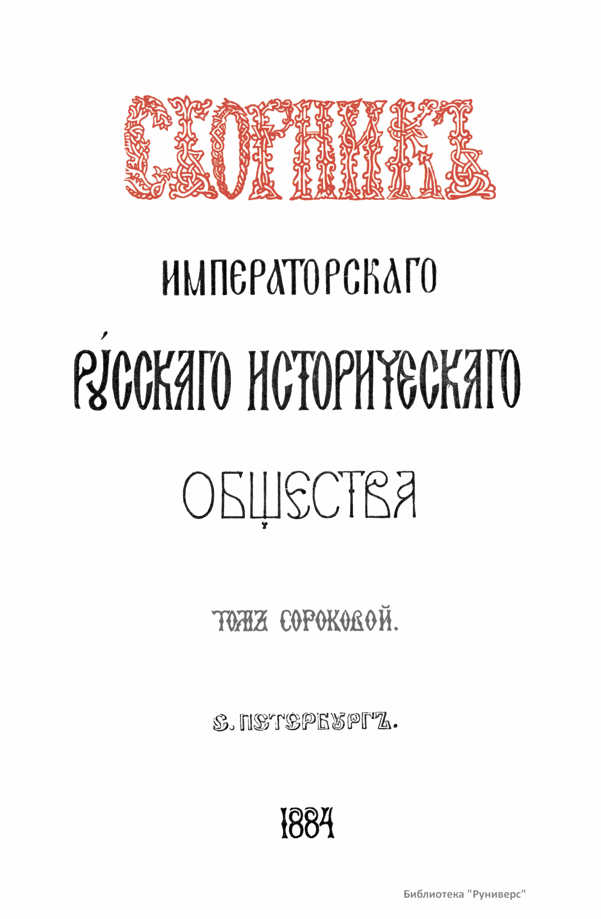 Сборникъ Русскаго историческаго общества. Томъ сороковой