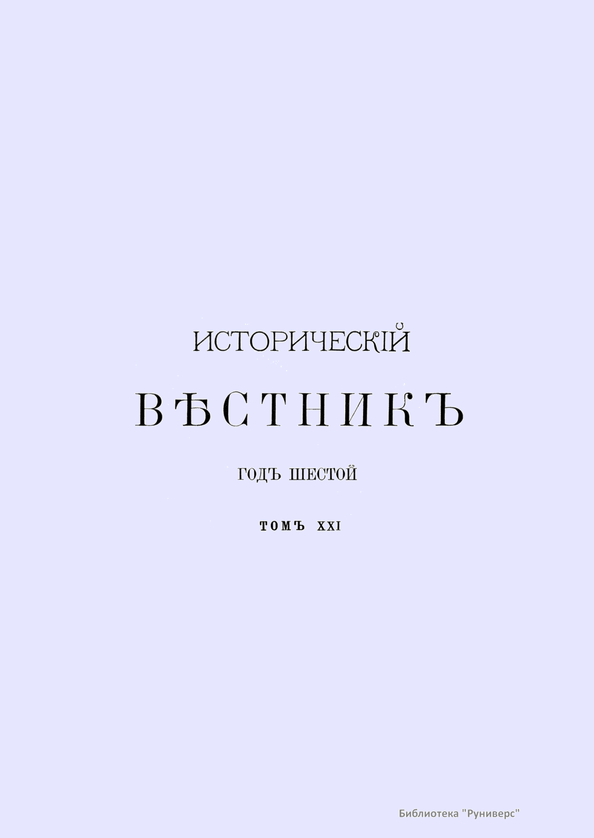 Историческiй вѣстникъ. Историко-литературный журналъ. Томъ XXI
