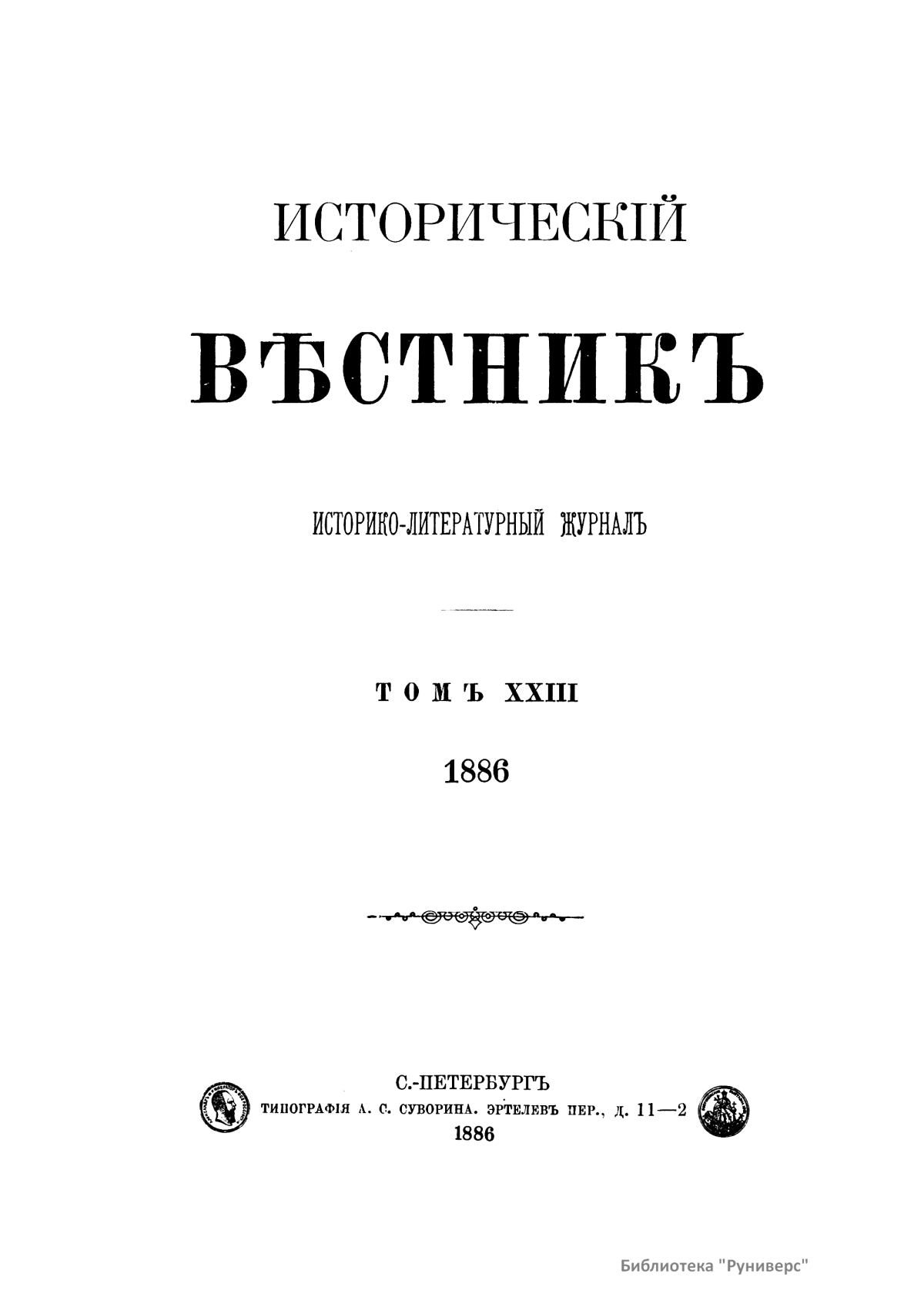 Исторический вестник. Историко-литературный журнал. Том XXIII