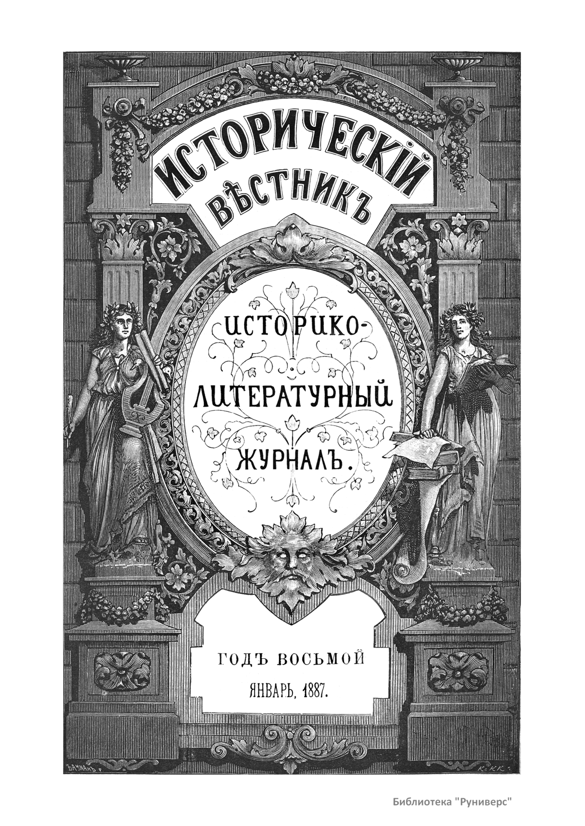 «Исторический вестник» - русский ежемесячный историко-литературный журнал. Издавался в Санкт-Петербурге с 1880-го по 1917 г. Журнал был основан А.С. Сувориным и С.Н. Шубинским с целью «знакомить читателей в живой, общедоступной форме с современным состоянием исторической науки и литературы в России и Европе». Вышло 150 тт. Каждый том состоял из трёх ежемесячных выпусков, имел свою нумерацию страниц, оглавление, список иллюстраций. Журнал приобрёл устойчивую популярность среди читателей, заняв прочное место в «триумвирате» русских исторических журналов наряду с «Русским архивом» и «Русской стариной». опережая их по количеству подписчиков. Отличием «Исторического вестника» было то, что он не помещал на своих страницах необработанных, сырых материалов. С другой стороны, журнал приближался по своему типу к журналам общелитературного образца, сочетая в себе коммерческий успех и доступное изложение материала.