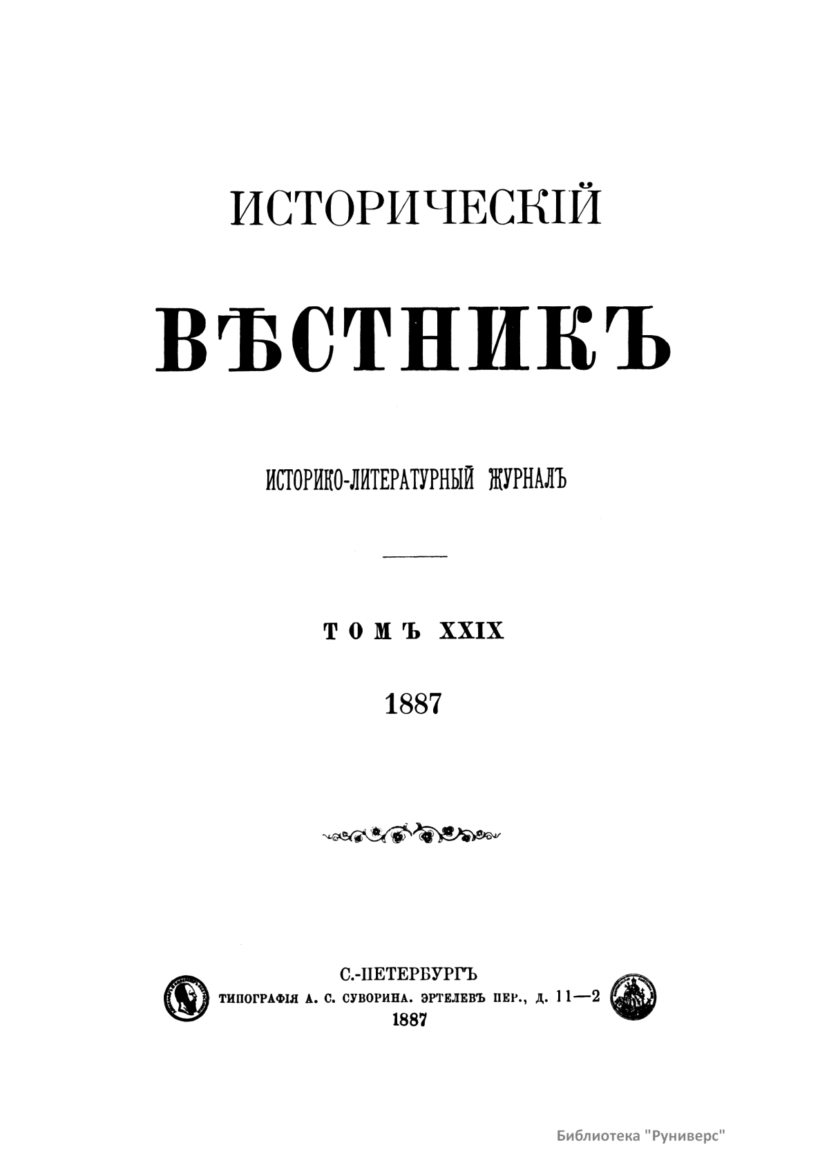 Исторический вестник. Историко-литературный журнал. Том XXIX
