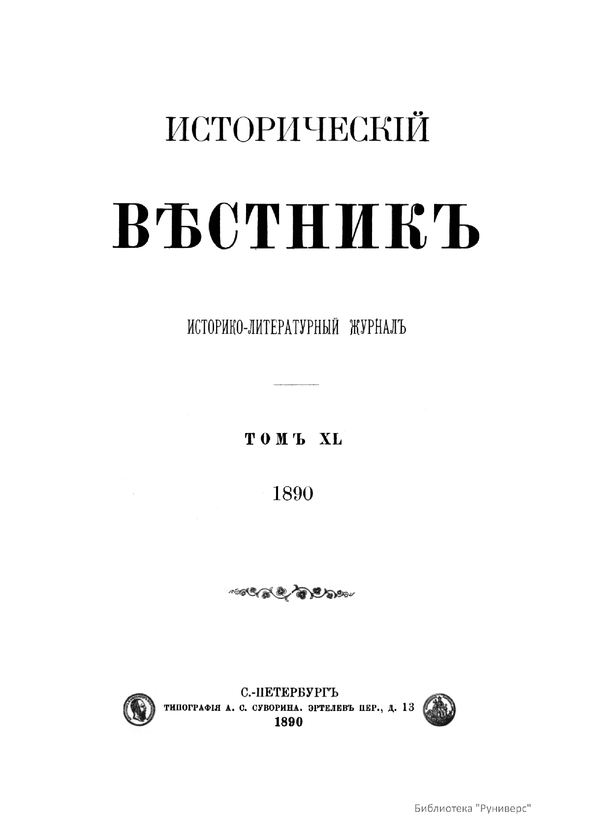 Историческiй вѣстникъ. Историко-литературный журналъ. Томъ XL