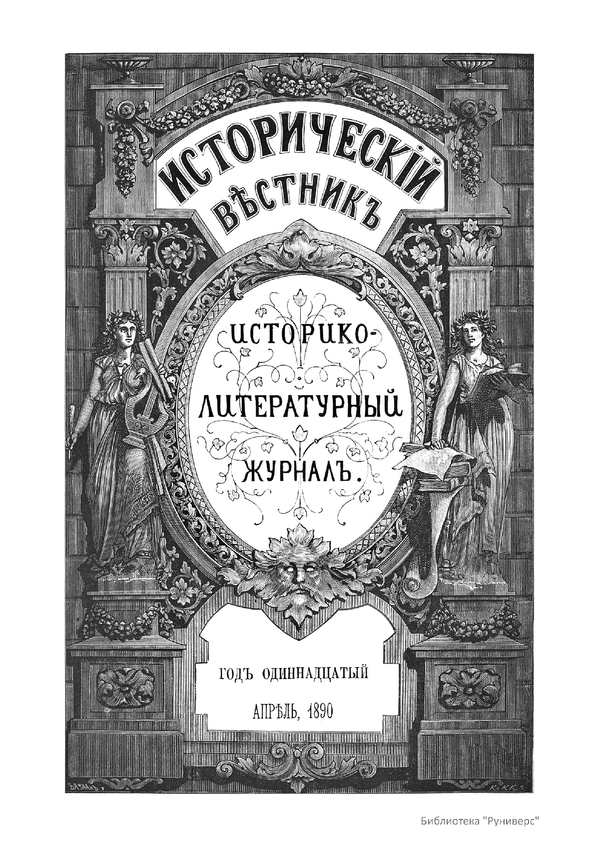 «Исторический вестник» - русский ежемесячный историко-литературный журнал. Издавался в Санкт-Петербурге с 1880-го по 1917 г. Журнал был основан А.С. Сувориным и С.Н. Шубинским с целью «знакомить читателей в живой, общедоступной форме с современным состоянием исторической науки и литературы в России и Европе». Вышло 150 тт. Каждый том состоял из трёх ежемесячных выпусков, имел свою нумерацию страниц, оглавление, список иллюстраций. Журнал приобрёл устойчивую популярность среди читателей, заняв прочное место в «триумвирате» русских исторических журналов наряду с «Русским архивом» и «Русской стариной». опережая их по количеству подписчиков. Отличием «Исторического вестника» было то, что он не помещал на своих страницах необработанных, сырых материалов. С другой стороны, журнал приближался по своему типу к журналам общелитературного образца, сочетая в себе коммерческий успех и доступное изложение материала.