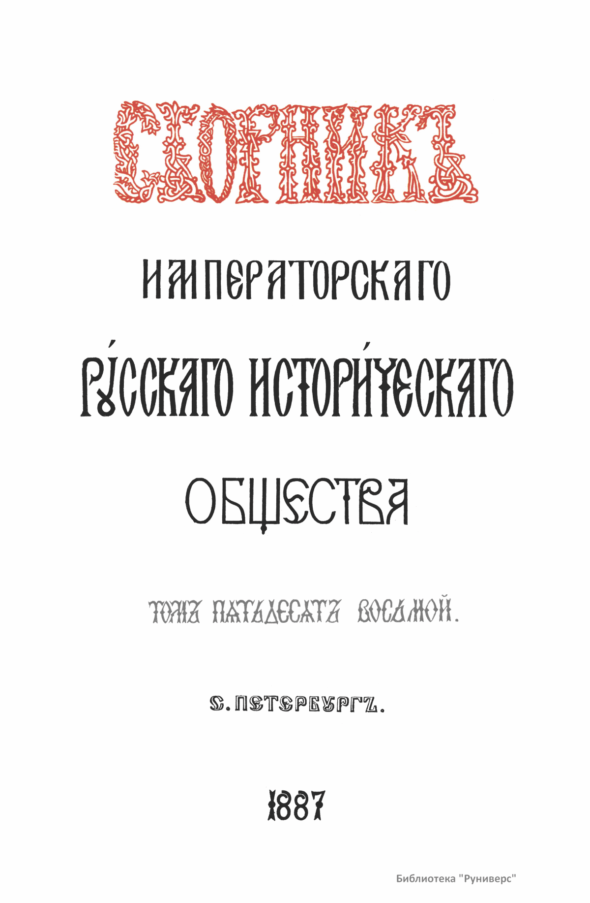 Сборникъ Русскаго историческаго общества. Томъ пятьдесятъ восьмой
