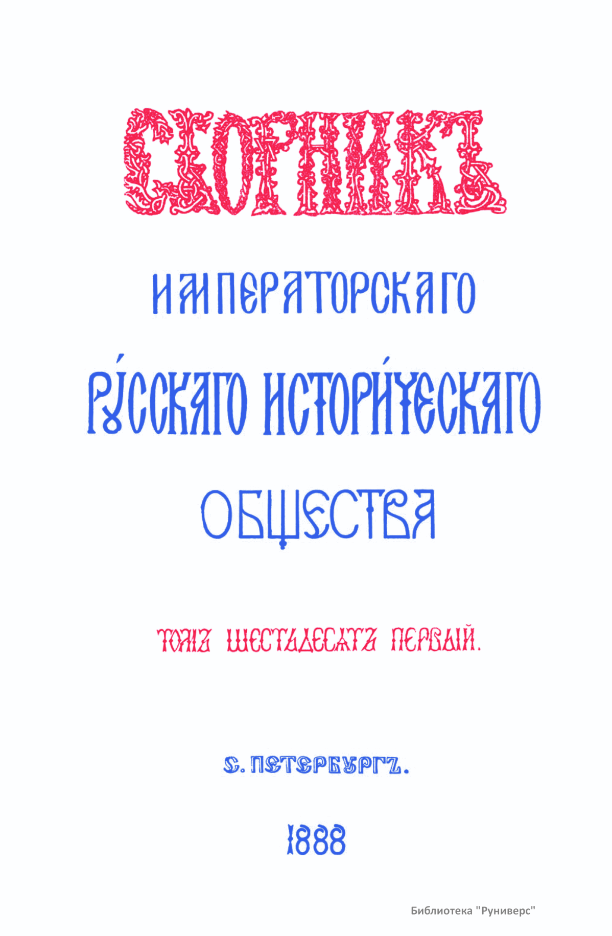 Сборникъ Русскаго историческаго общества. Томъ шестьдесятъ первый