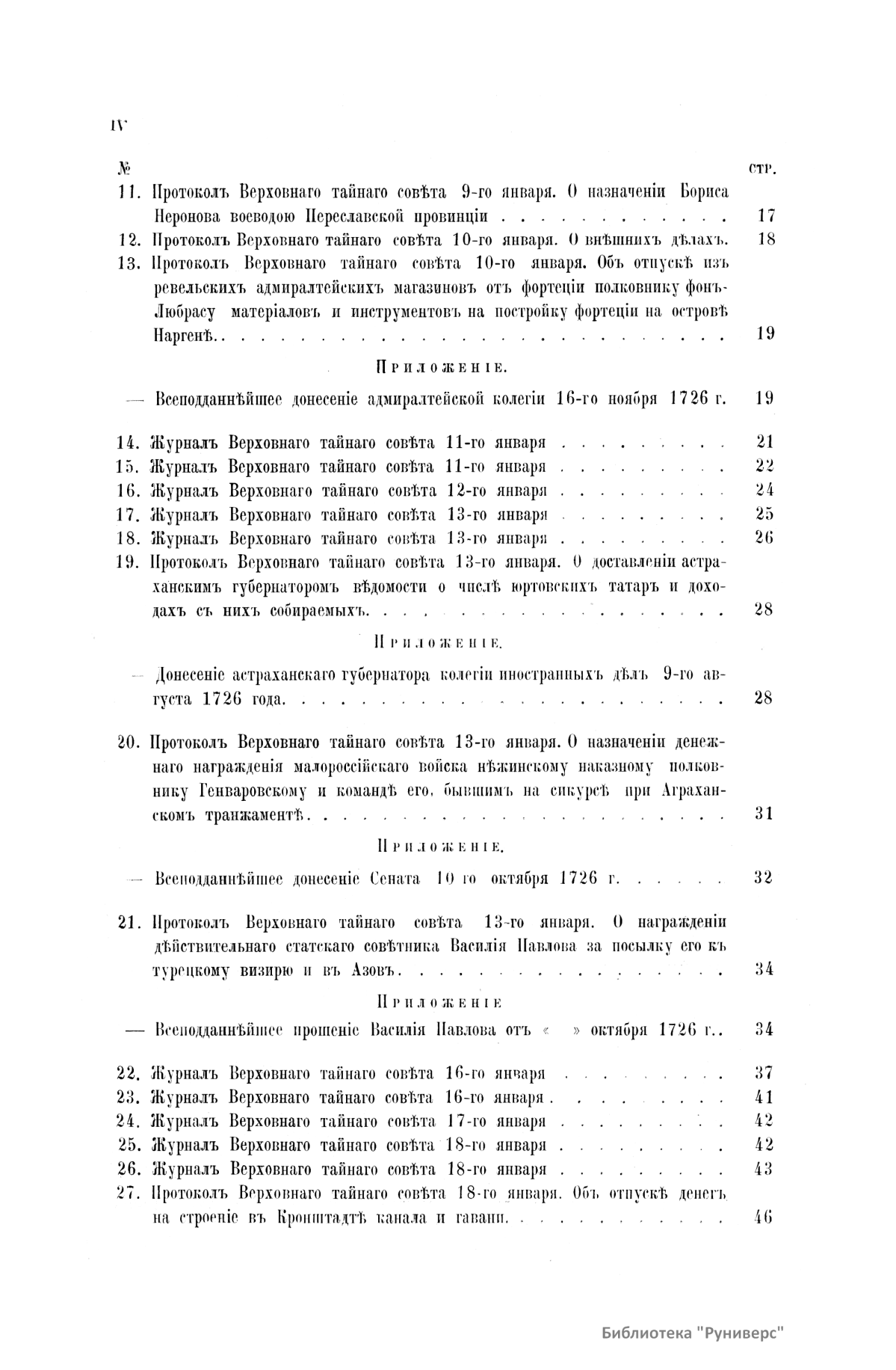Сборники Русского исторического общества (РИО) – крупнейшая серийная публикация источников по истории России XVIII–XIX веков. За пятьдесят лет существования Общества (1866–1916) было выпущено 148 томов Сборника. Тематика опубликованных в Сборнике материалов обширна и включает в себя документы, относящиеся как к внутренней, так и внешней политике государства. Среди них можно выделить шесть крупных серий: «Материалы по истории Екатерининской комиссии для сочинения проекта нового Уложения 1767 г.», «Бумаги Екатерины II», «Материалы для истории высших государственных учреждений России в XVIII в.», «Материалы для политической и бытовой истории в 1812 г.», «Дипломатическая переписка иностранных послов и посланников при русском дворе», «Памятники дипломатических отношений древней России с державами иностранными», включающие документы XV–XVII веков, перешедшие в РИО от Второго отделения императорской канцелярии. Помимо этих серий в Сборнике публиковались личные бумаги Петра I, Петра II, Екатерины I, Александра I, Николая I, Александра II, а также документы, связанные с деятельностью видных государственных сановников. В Сборнике выходили отчёты о годичных собраниях РИО. Во время подготовки издания Русского биографического словаря в томах 60 и 62 был помещён Азбучный указатель имён русских деятелей для словаря. Основная работа по подготовке издания Сборника лежала на ответственных секретарях РИО. Первым таким секретарём стал один из наиболее деятельных организаторов Общества А. А. Половцев. В разное время в работе Общества принимали участие крупные историки: С. М. Соловьёв, В. О. Ключевский, Н. И. Костомаров, Н. Ф. Дубровин, П. П. Пекарский, В. И. Сергеевич, Я. К. Грот, А. Н. Филиппов, И. Е. Забелин, А. Н. Пыпин, С. Ф. Платонов, В. С. Иконников, Н. Д. Чечулин, А. Н. Попов.