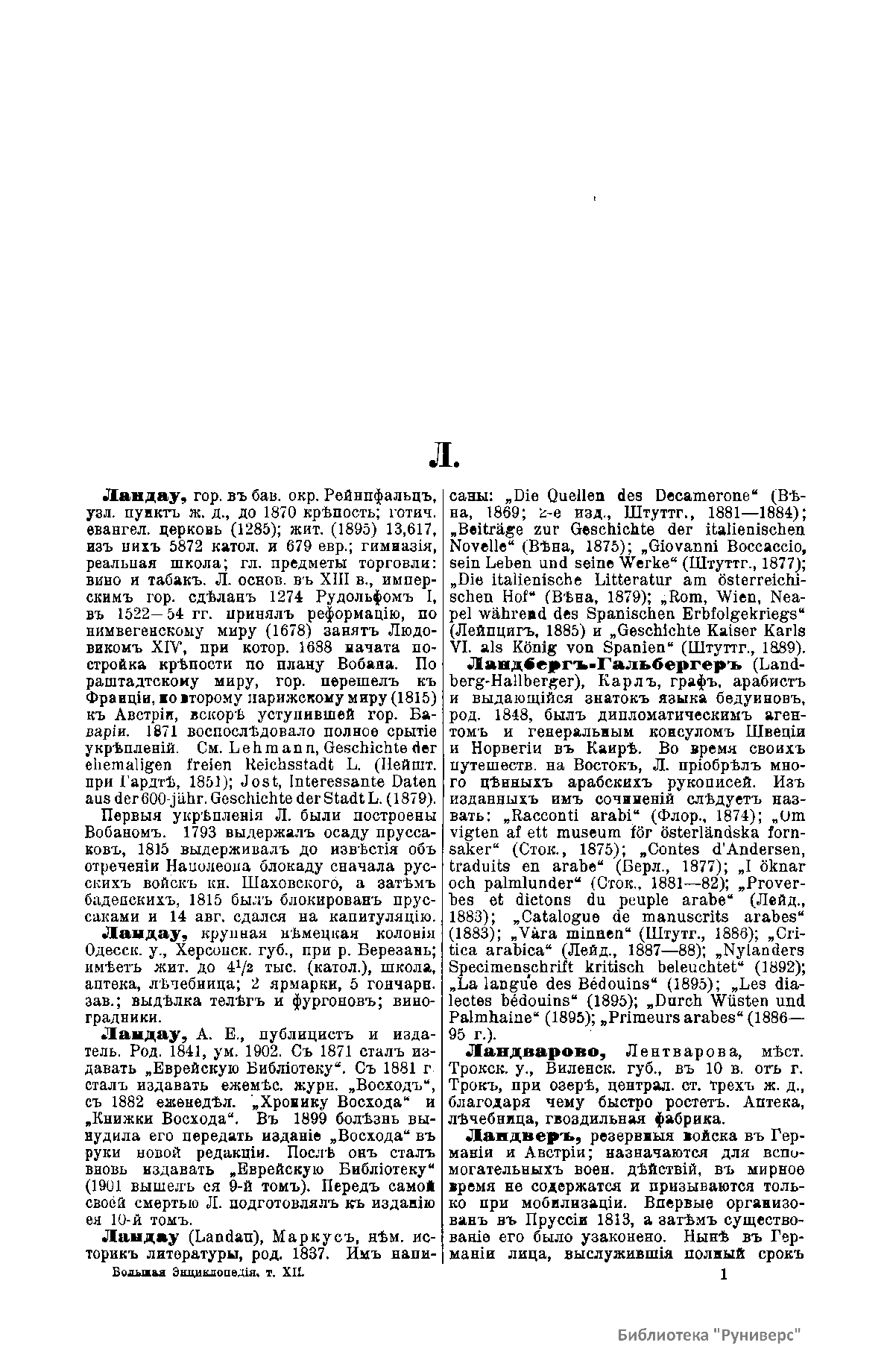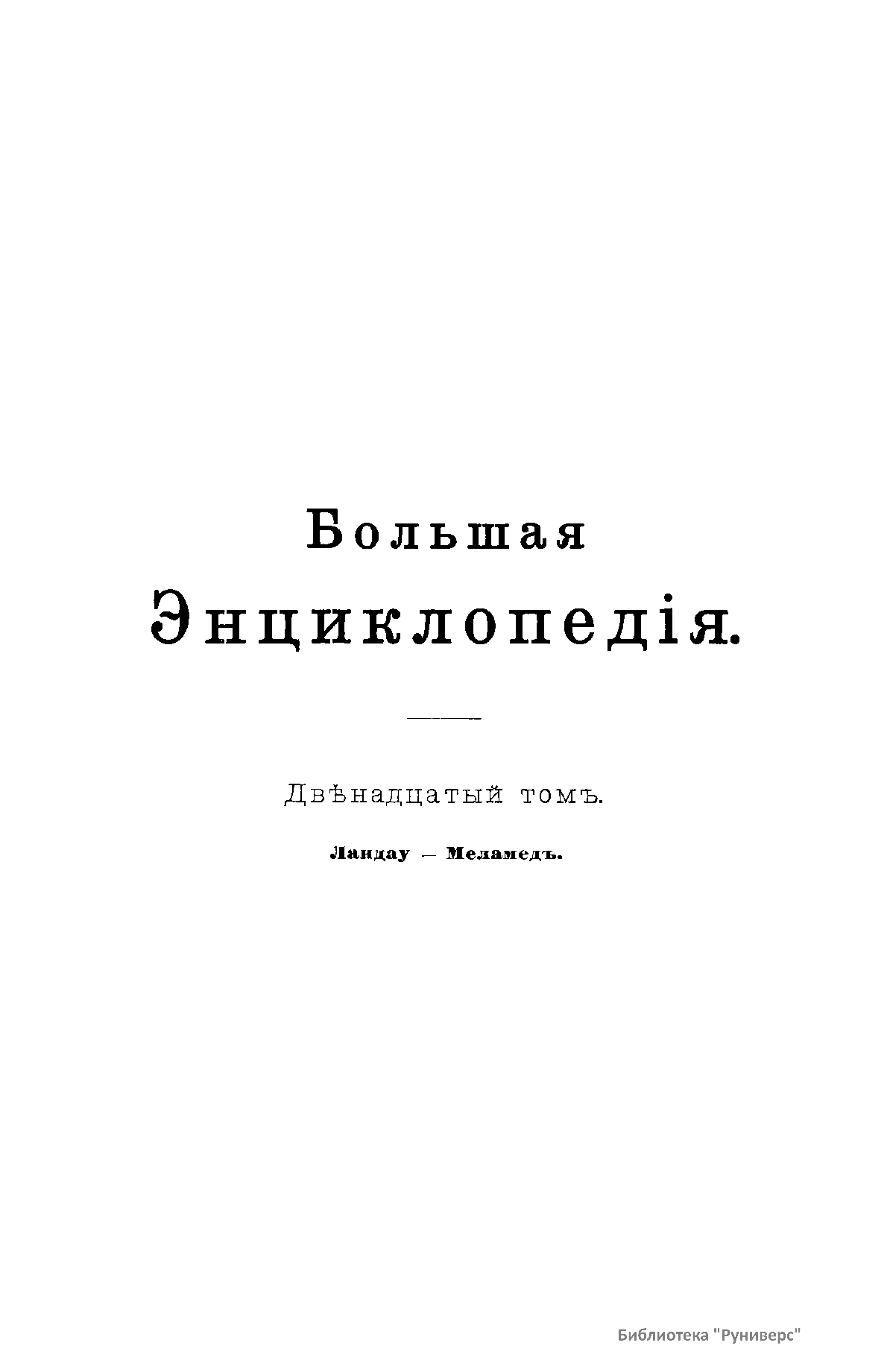 Большая Энциклопедiя. Двѣнадцатый томъ. Ландау - Меламедъ