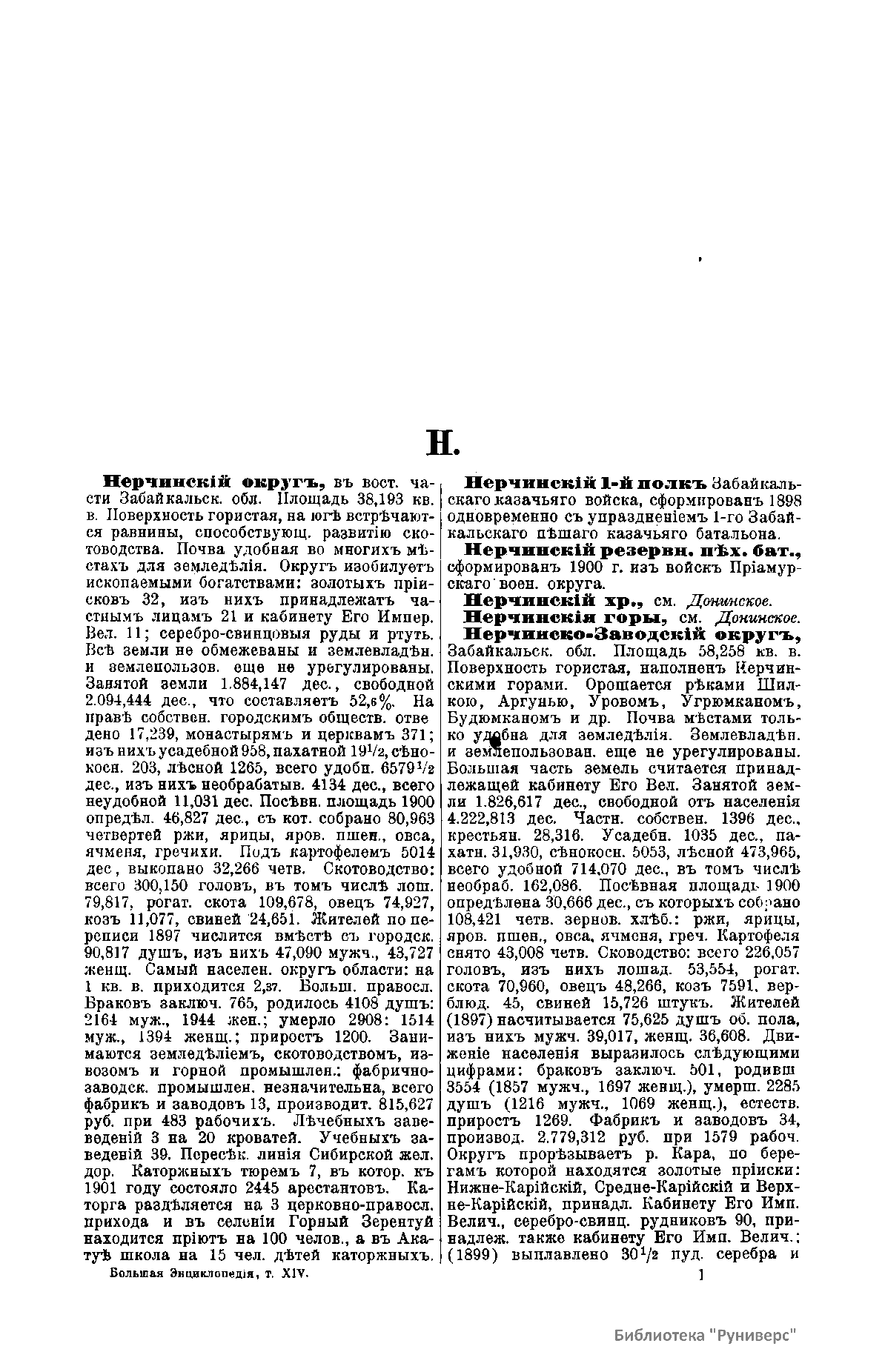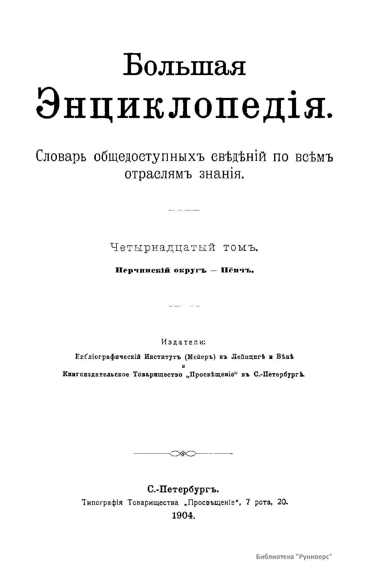Большая Энциклопедiя. Четырнадцатый томъ. Нерчинскiй округъ - Пёнчъ