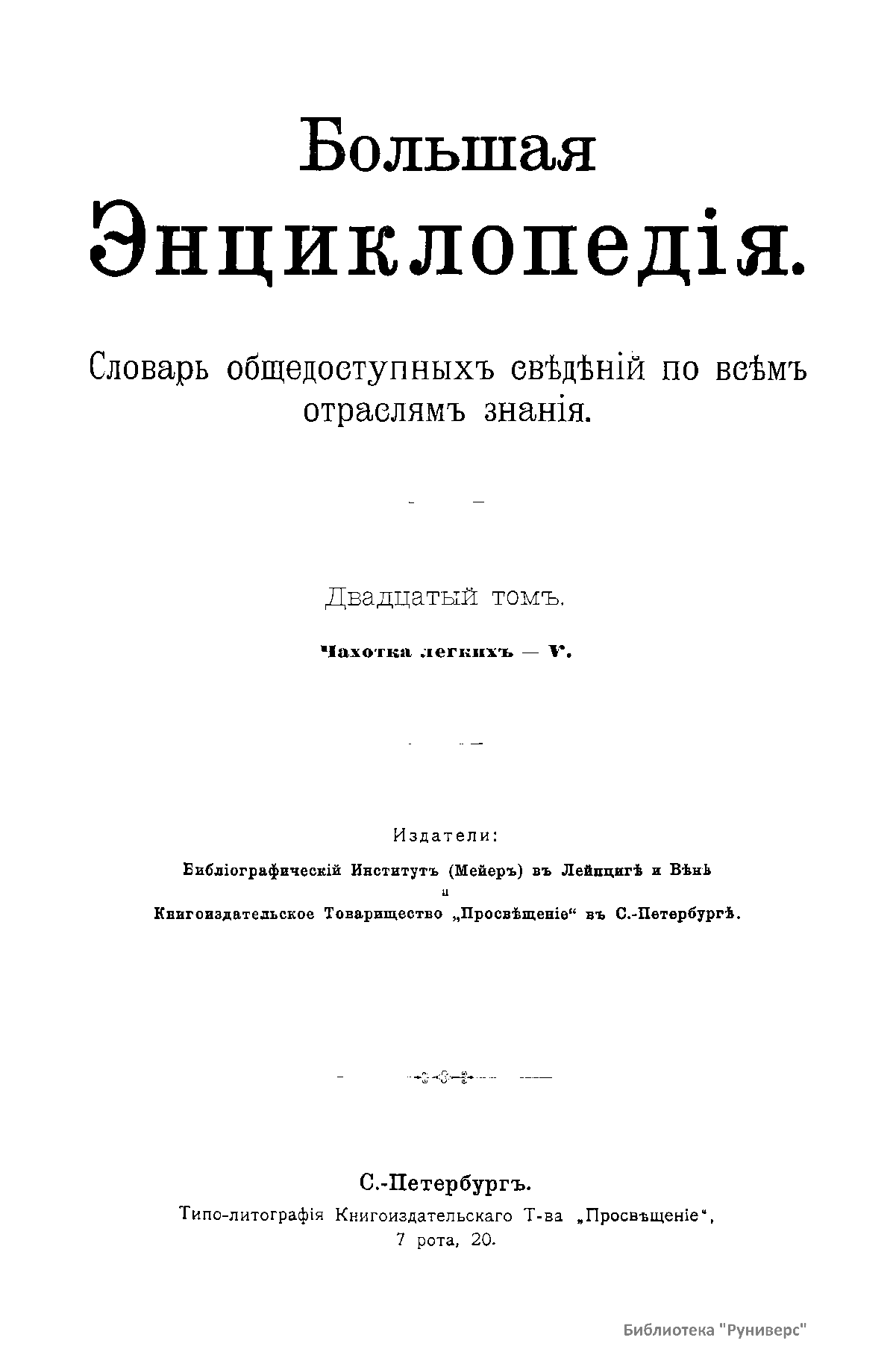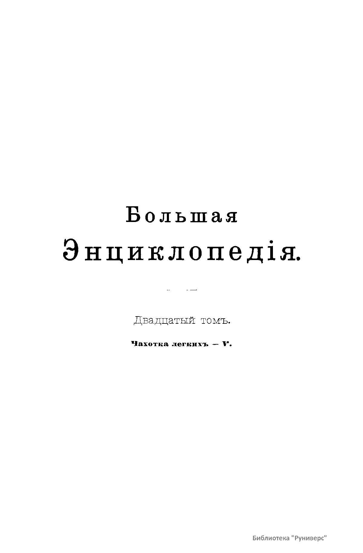 Большая Энциклопедiя. Двадцатый том. Чахотка легкихъ - V