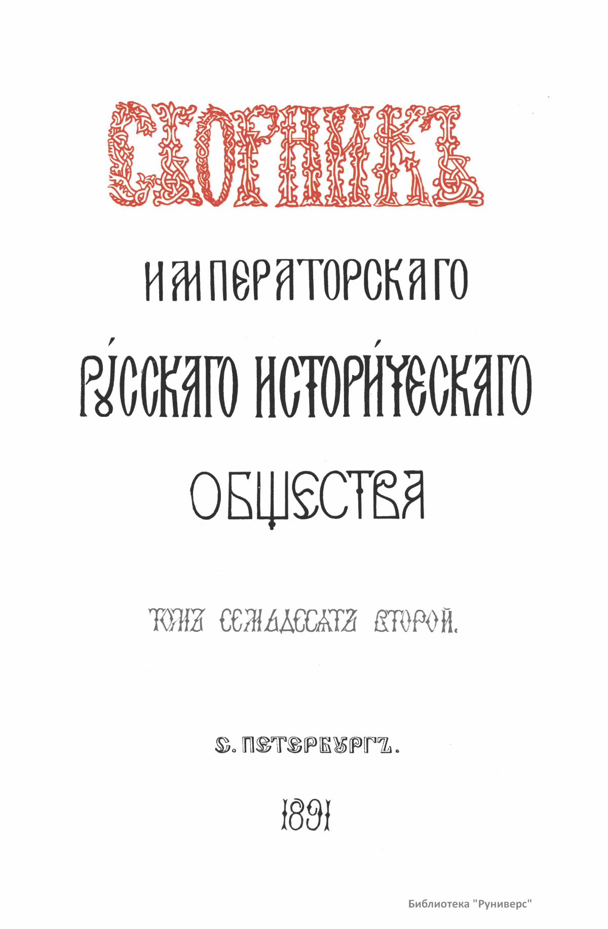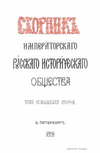 Сборникъ Русскаго историческаго общества. Томъ семьдесятъ второй