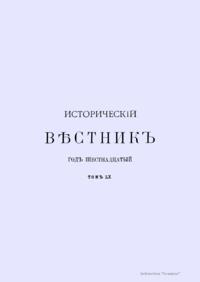 «Исторический вестник» - русский ежемесячный историко-литературный журнал. Издавался в Санкт-Петербурге с 1880-го по 1917 г. Журнал был основан А.С. Сувориным и С.Н. Шубинским с целью «знакомить читателей в живой, общедоступной форме с современным состоянием исторической науки и литературы в России и Европе». Вышло 150 тт. Каждый том состоял из трёх ежемесячных выпусков, имел свою нумерацию страниц, оглавление, список иллюстраций. Журнал приобрёл устойчивую популярность среди читателей, заняв прочное место в «триумвирате» русских исторических журналов наряду с «Русским архивом» и «Русской стариной». опережая их по количеству подписчиков. Отличием «Исторического вестника» было то, что он не помещал на своих страницах необработанных, сырых материалов. С другой стороны, журнал приближался по своему типу к журналам общелитературного образца, сочетая в себе коммерческий успех и доступное изложение материала.