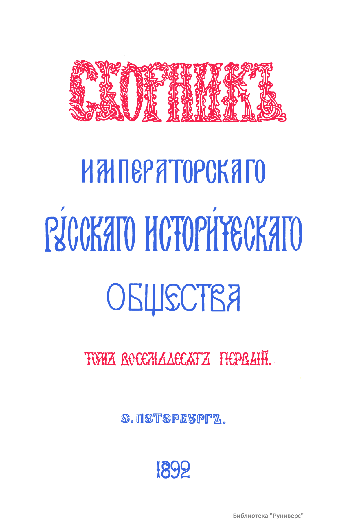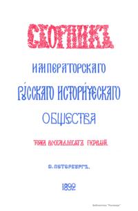 Сборникъ Русскаго историческаго общества. Томъ восемьдесятъ первый
