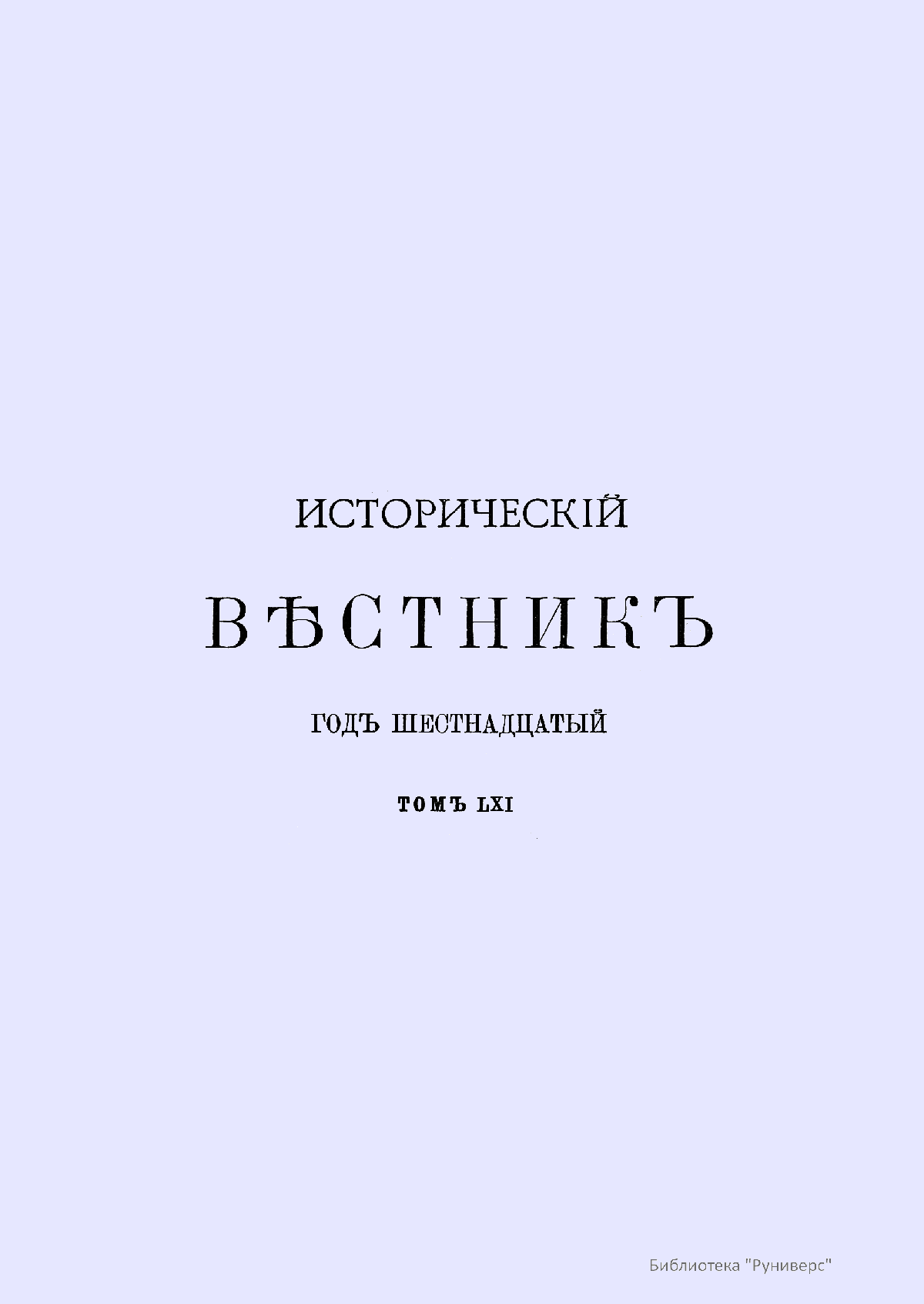 Исторический вестник. Историко-литературный журнал. Том LXI