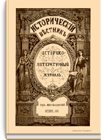 «Исторический вестник» - русский ежемесячный историко-литературный журнал. Издавался в Санкт-Петербурге с 1880-го по 1917 г. Журнал был основан А.С. Сувориным и С.Н. Шубинским с целью «знакомить читателей в живой, общедоступной форме с современным состоянием исторической науки и литературы в России и Европе». Вышло 150 тт. Каждый том состоял из трёх ежемесячных выпусков, имел свою нумерацию страниц, оглавление, список иллюстраций. Журнал приобрёл устойчивую популярность среди читателей, заняв прочное место в «триумвирате» русских исторических журналов наряду с «Русским архивом» и «Русской стариной». опережая их по количеству подписчиков. Отличием «Исторического вестника» было то, что он не помещал на своих страницах необработанных, сырых материалов. С другой стороны, журнал приближался по своему типу к журналам общелитературного образца, сочетая в себе коммерческий успех и доступное изложение материала.