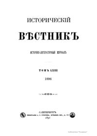 Исторический вестник. Историко-литературный журнал. Том LXIII