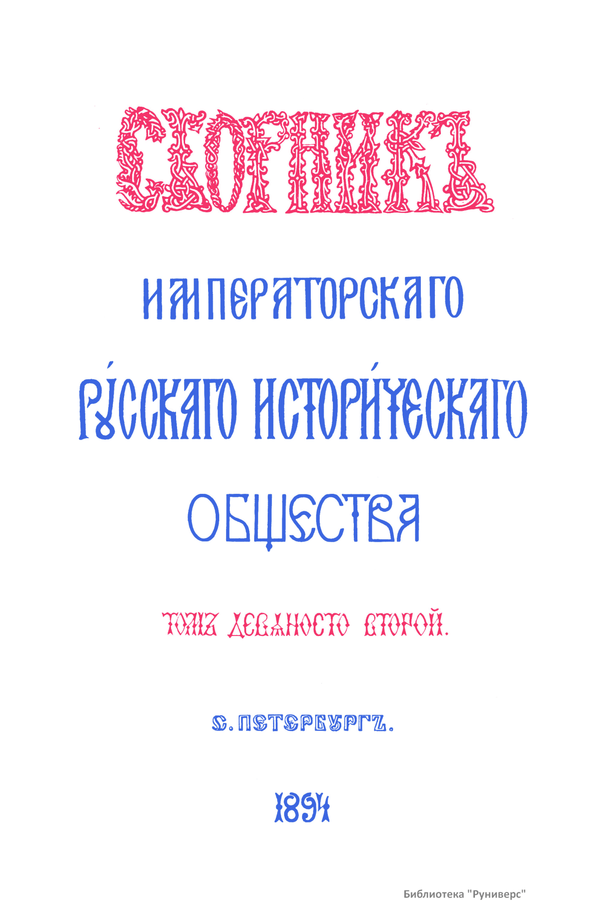 Сборникъ Русскаго историческаго общества. Томъ девяносто второй