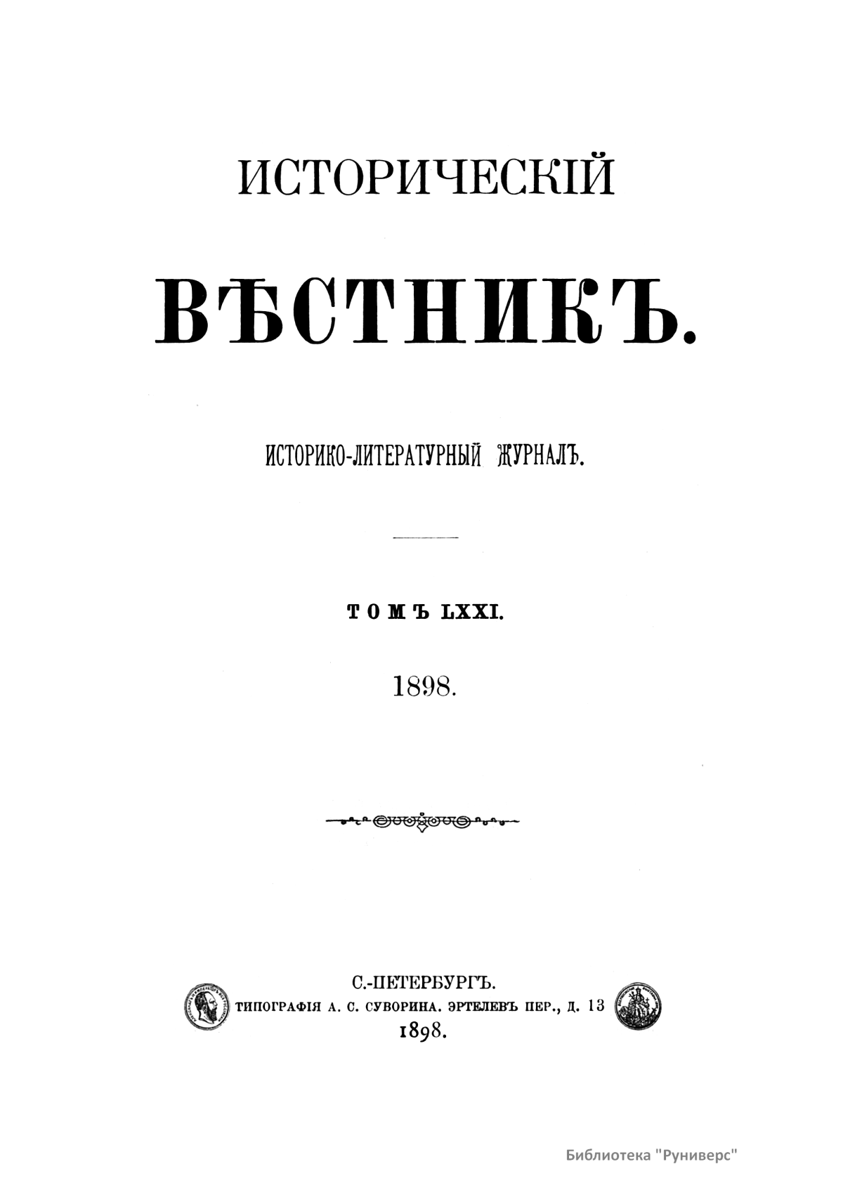 Исторический вестник. Историко-литературный журнал. Том LXXI
