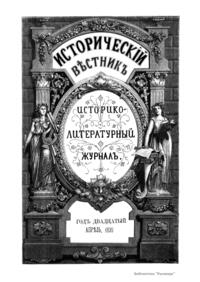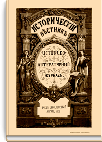 «Исторический вестник» - русский ежемесячный историко-литературный журнал. Издавался в Санкт-Петербурге с 1880-го по 1917 г. Журнал был основан А.С. Сувориным и С.Н. Шубинским с целью «знакомить читателей в живой, общедоступной форме с современным состоянием исторической науки и литературы в России и Европе». Вышло 150 тт. Каждый том состоял из трёх ежемесячных выпусков, имел свою нумерацию страниц, оглавление, список иллюстраций. Журнал приобрёл устойчивую популярность среди читателей, заняв прочное место в «триумвирате» русских исторических журналов наряду с «Русским архивом» и «Русской стариной». опережая их по количеству подписчиков. Отличием «Исторического вестника» было то, что он не помещал на своих страницах необработанных, сырых материалов. С другой стороны, журнал приближался по своему типу к журналам общелитературного образца, сочетая в себе коммерческий успех и доступное изложение материала.