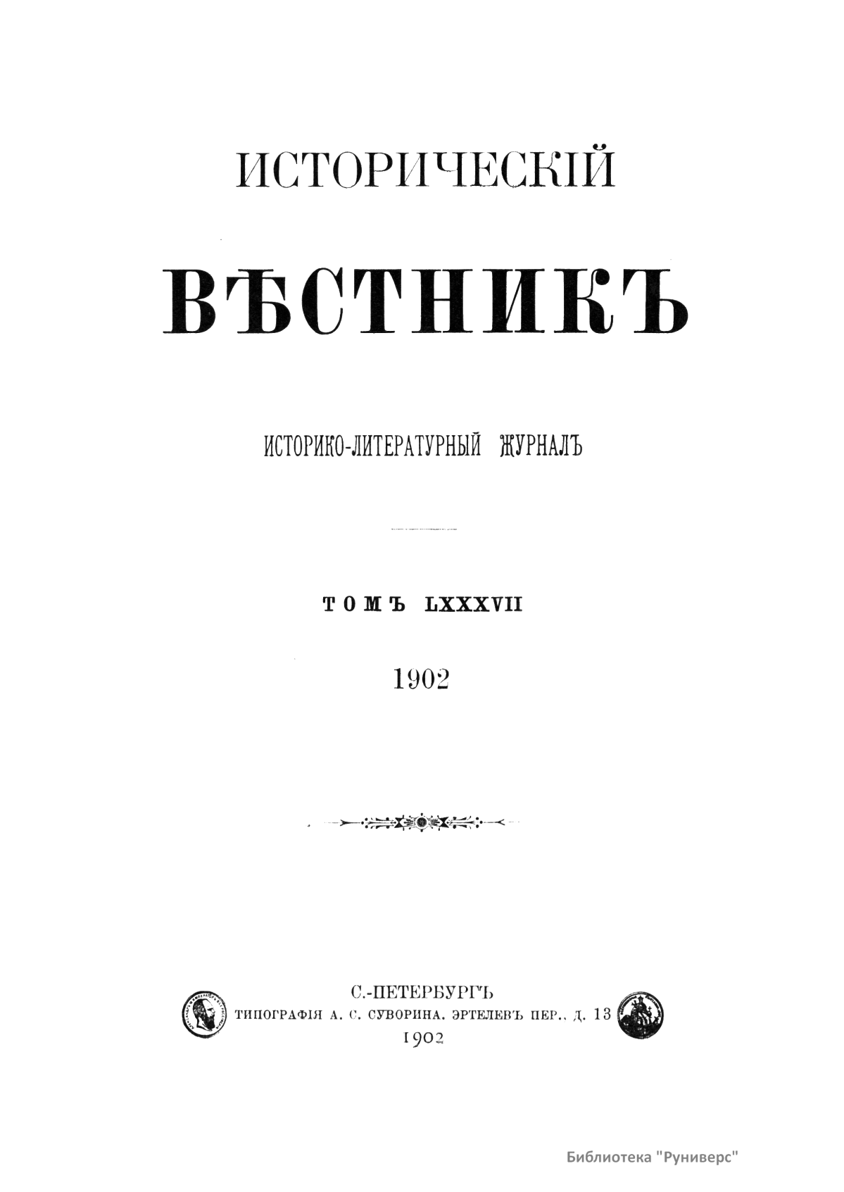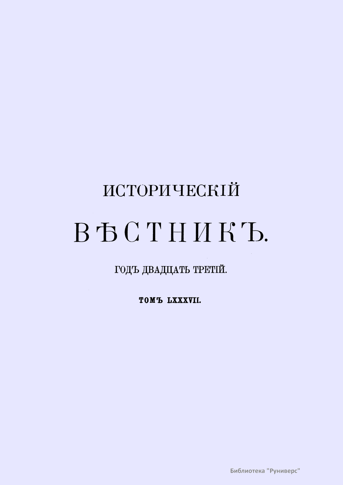 Исторический вестник. Историко-литературный журнал. Том LXXXVII