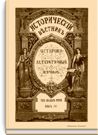 «Исторический вестник» - русский ежемесячный историко-литературный журнал. Издавался в Санкт-Петербурге с 1880-го по 1917 г. Журнал был основан А.С. Сувориным и С.Н. Шубинским с целью «знакомить читателей в живой, общедоступной форме с современным состоянием исторической науки и литературы в России и Европе». Вышло 150 тт. Каждый том состоял из трёх ежемесячных выпусков, имел свою нумерацию страниц, оглавление, список иллюстраций. Журнал приобрёл устойчивую популярность среди читателей, заняв прочное место в «триумвирате» русских исторических журналов наряду с «Русским архивом» и «Русской стариной». опережая их по количеству подписчиков. Отличием «Исторического вестника» было то, что он не помещал на своих страницах необработанных, сырых материалов. С другой стороны, журнал приближался по своему типу к журналам общелитературного образца, сочетая в себе коммерческий успех и доступное изложение материала.