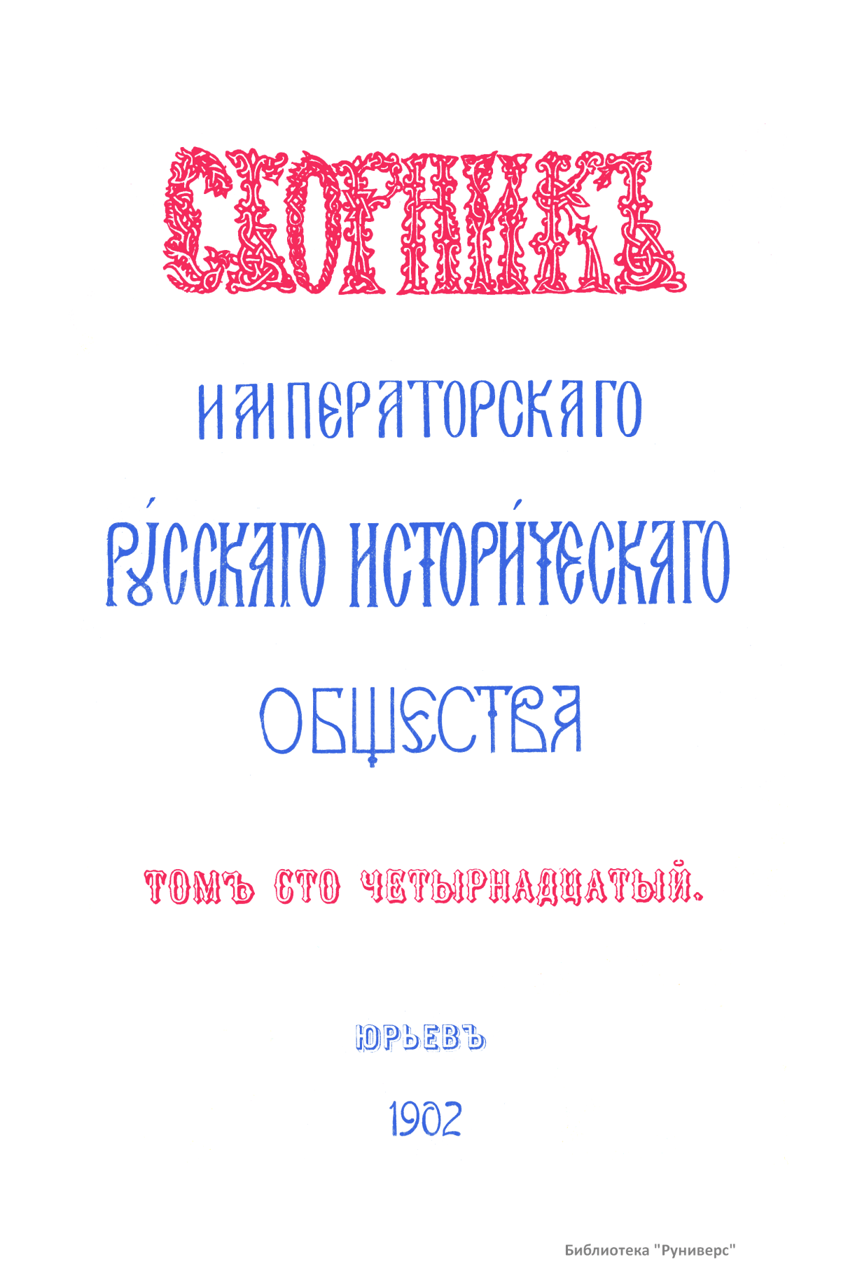 Сборникъ Русскаго историческаго общества. Томъ сто четырнадцатый