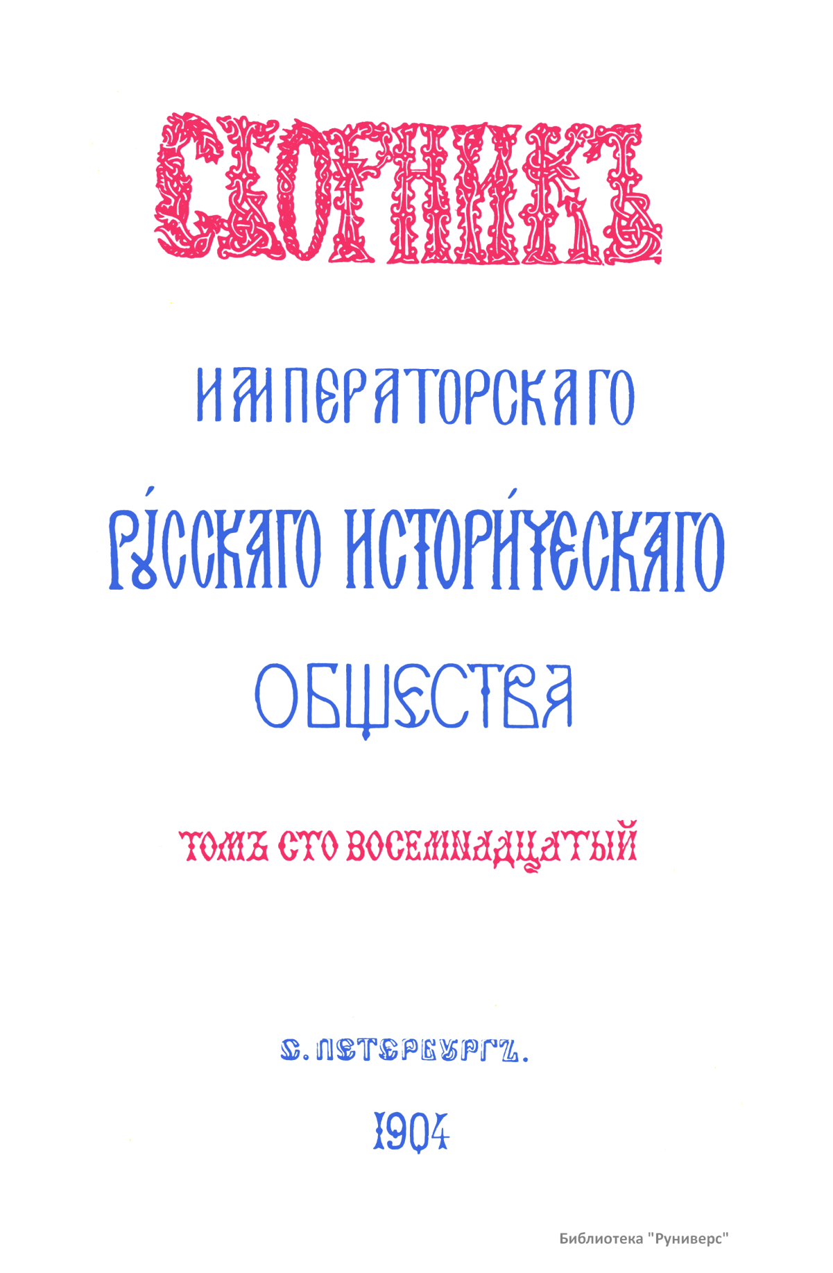 Сборникъ Русскаго историческаго общества. Томъ сто восемнадцатый