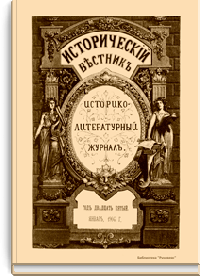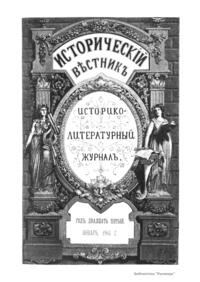 «Исторический вестник» - русский ежемесячный историко-литературный журнал. Издавался в Санкт-Петербурге с 1880-го по 1917 г. Журнал был основан А.С. Сувориным и С.Н. Шубинским с целью «знакомить читателей в живой, общедоступной форме с современным состоянием исторической науки и литературы в России и Европе». Вышло 150 тт. Каждый том состоял из трёх ежемесячных выпусков, имел свою нумерацию страниц, оглавление, список иллюстраций. Журнал приобрёл устойчивую популярность среди читателей, заняв прочное место в «триумвирате» русских исторических журналов наряду с «Русским архивом» и «Русской стариной». опережая их по количеству подписчиков. Отличием «Исторического вестника» было то, что он не помещал на своих страницах необработанных, сырых материалов. С другой стороны, журнал приближался по своему типу к журналам общелитературного образца, сочетая в себе коммерческий успех и доступное изложение материала.