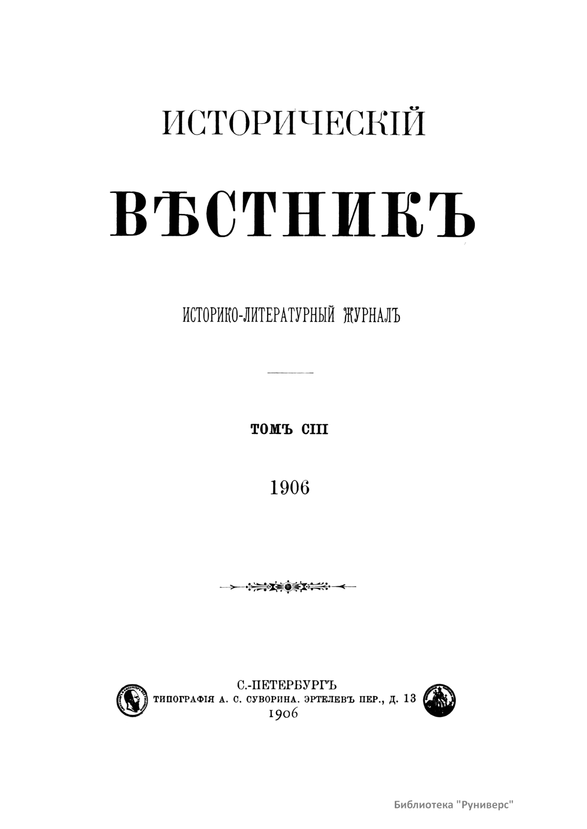 Исторический вестник. Историко-литературный журнал. Том CIII