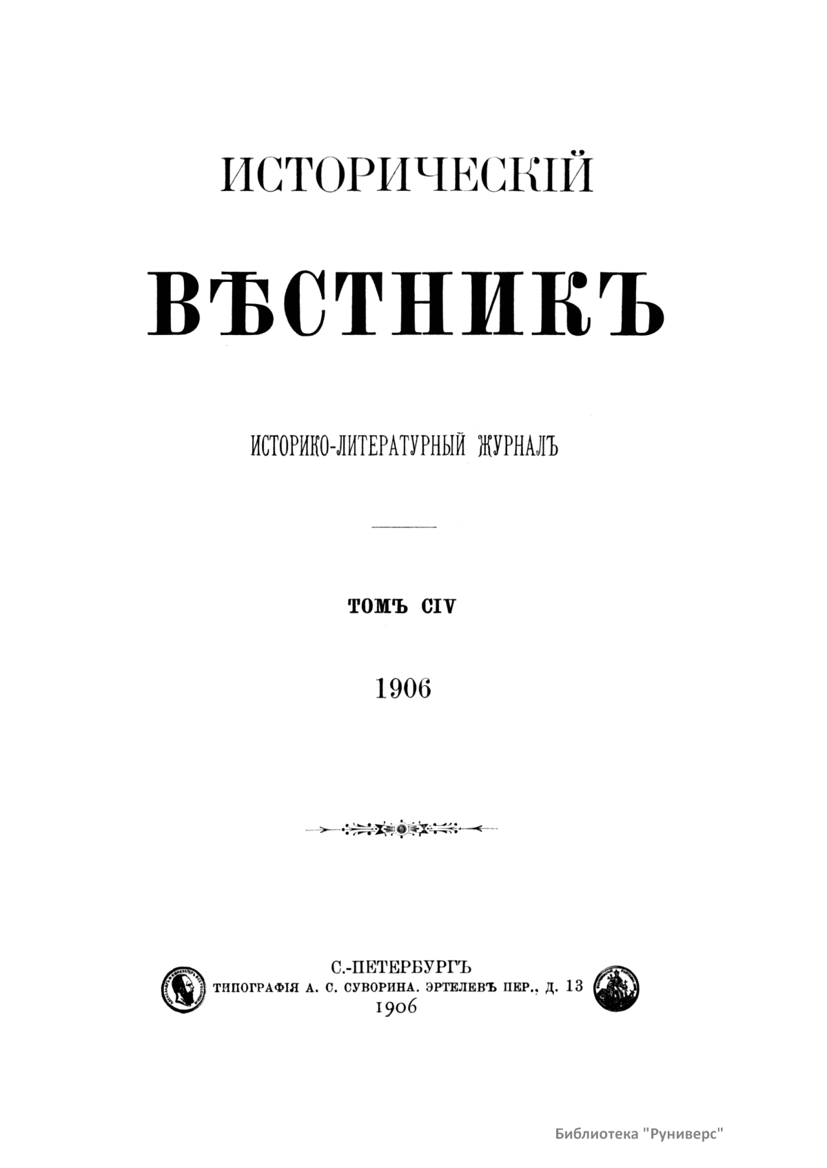 Исторический вестник. Историко-литературный журнал. Том CIV