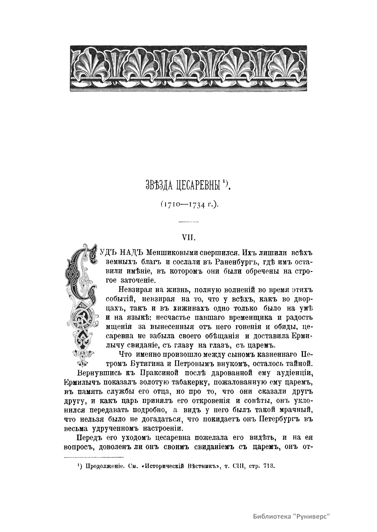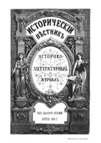«Исторический вестник» - русский ежемесячный историко-литературный журнал. Издавался в Санкт-Петербурге с 1880-го по 1917 г. Журнал был основан А.С. Сувориным и С.Н. Шубинским с целью «знакомить читателей в живой, общедоступной форме с современным состоянием исторической науки и литературы в России и Европе». Вышло 150 тт. Каждый том состоял из трёх ежемесячных выпусков, имел свою нумерацию страниц, оглавление, список иллюстраций. Журнал приобрёл устойчивую популярность среди читателей, заняв прочное место в «триумвирате» русских исторических журналов наряду с «Русским архивом» и «Русской стариной». опережая их по количеству подписчиков. Отличием «Исторического вестника» было то, что он не помещал на своих страницах необработанных, сырых материалов. С другой стороны, журнал приближался по своему типу к журналам общелитературного образца, сочетая в себе коммерческий успех и доступное изложение материала.