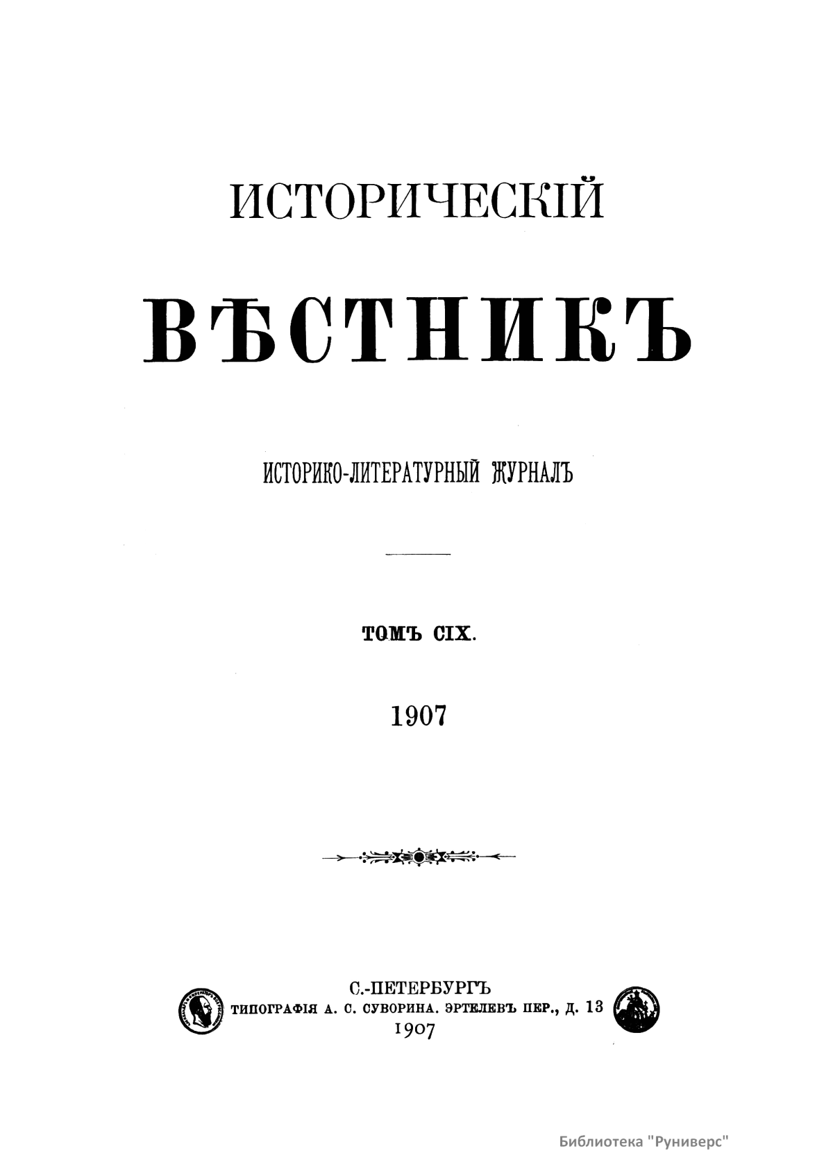 Исторический вестник. Историко-литературный журнал. Том CIX