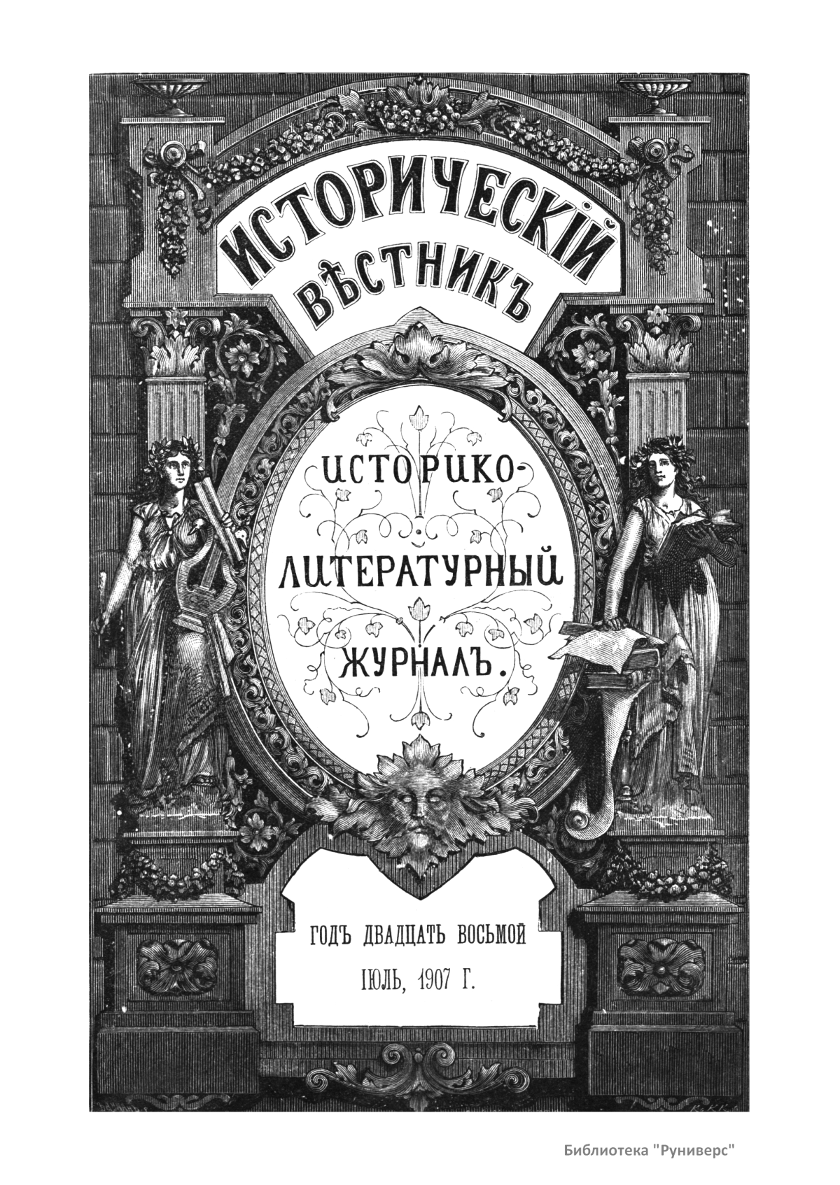 «Исторический вестник» - русский ежемесячный историко-литературный журнал. Издавался в Санкт-Петербурге с 1880-го по 1917 г. Журнал был основан А.С. Сувориным и С.Н. Шубинским с целью «знакомить читателей в живой, общедоступной форме с современным состоянием исторической науки и литературы в России и Европе». Вышло 150 тт. Каждый том состоял из трёх ежемесячных выпусков, имел свою нумерацию страниц, оглавление, список иллюстраций. Журнал приобрёл устойчивую популярность среди читателей, заняв прочное место в «триумвирате» русских исторических журналов наряду с «Русским архивом» и «Русской стариной». опережая их по количеству подписчиков. Отличием «Исторического вестника» было то, что он не помещал на своих страницах необработанных, сырых материалов. С другой стороны, журнал приближался по своему типу к журналам общелитературного образца, сочетая в себе коммерческий успех и доступное изложение материала.