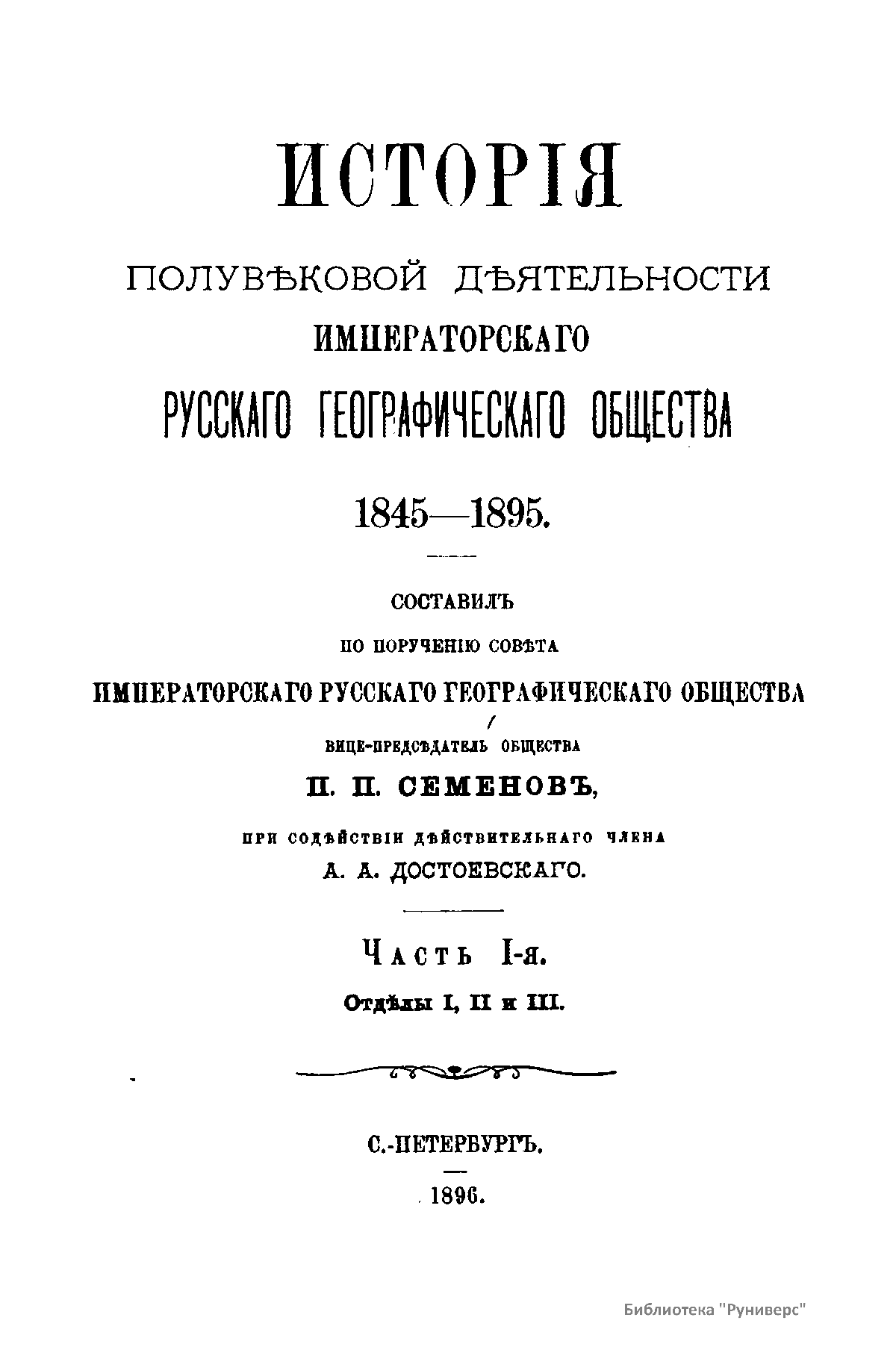 Исторiя полувѣковой дѣятельности Императорскаго Русскаго Географическаго Общества 1845-1895