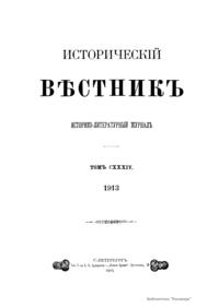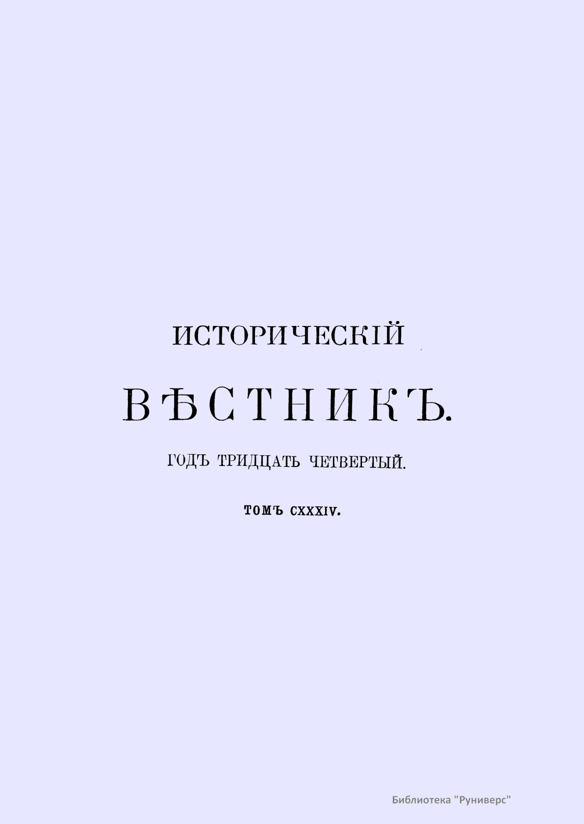 Исторический вестник. Историко-литературный журнал. Том CXXXIV