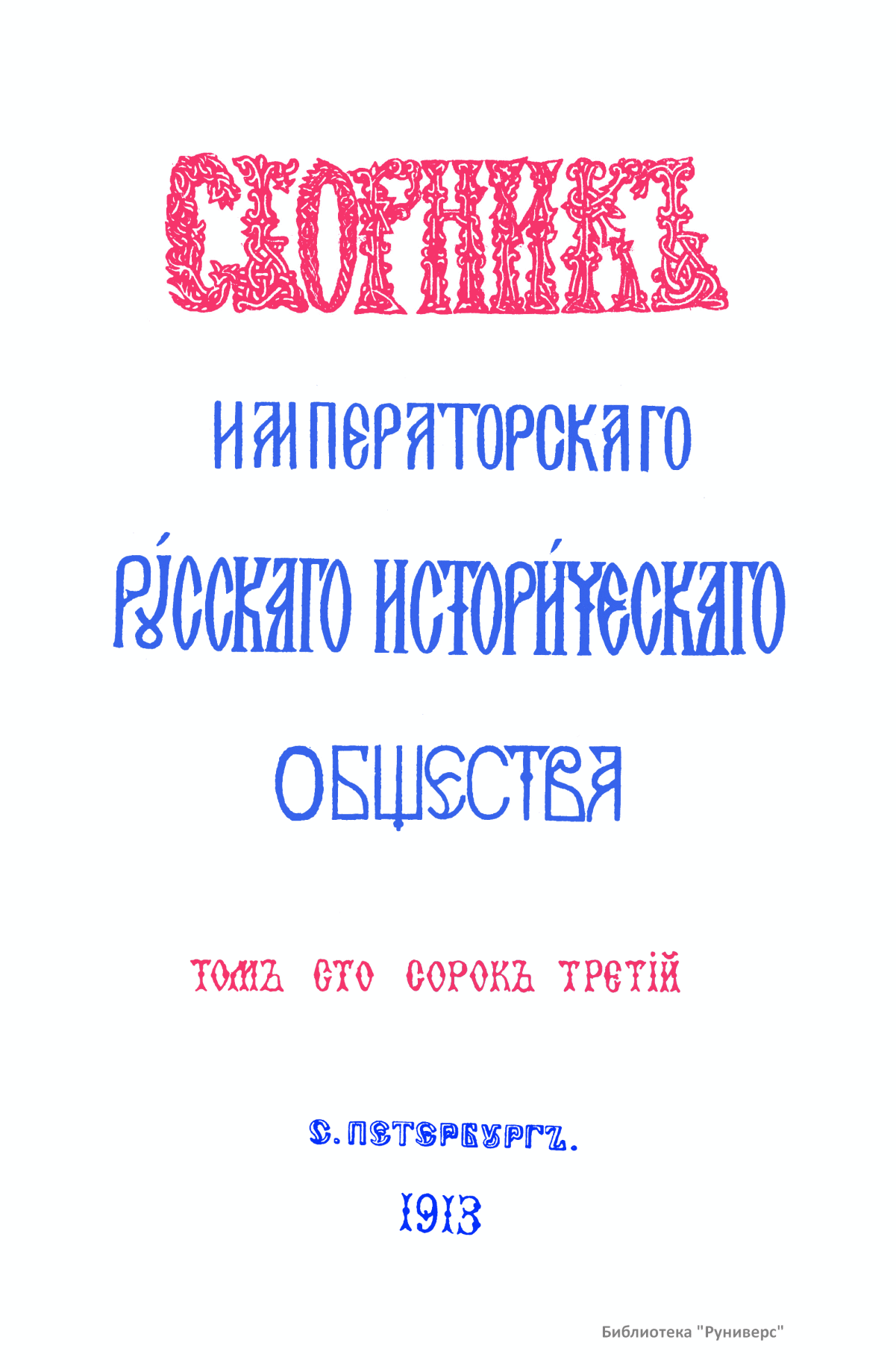 Сборникъ Русскаго историческаго общества. Томъ сто сорокъ третiй