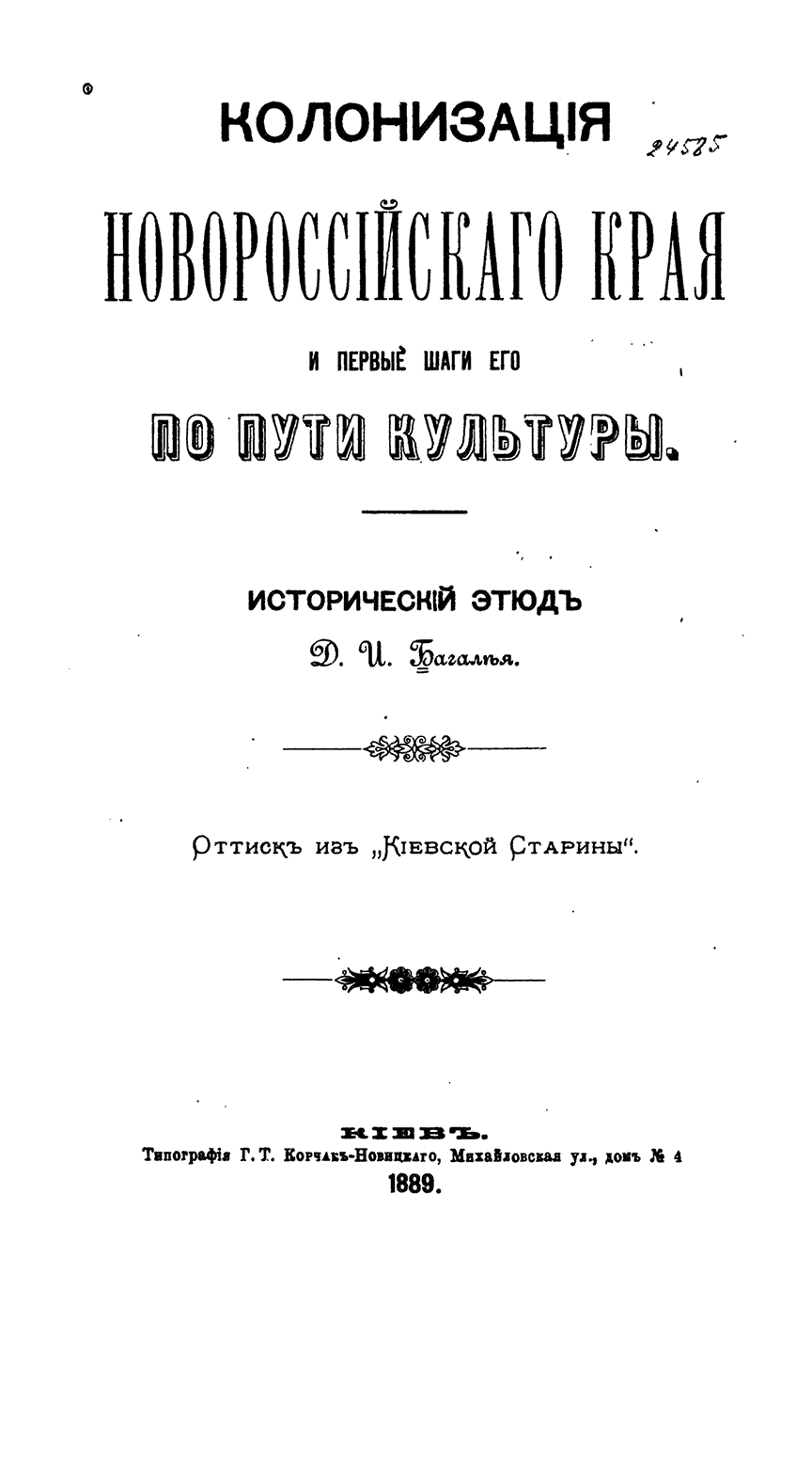 Колонизация Новороссийского края и первые шаги его по пути культуры. Исторический этюд
