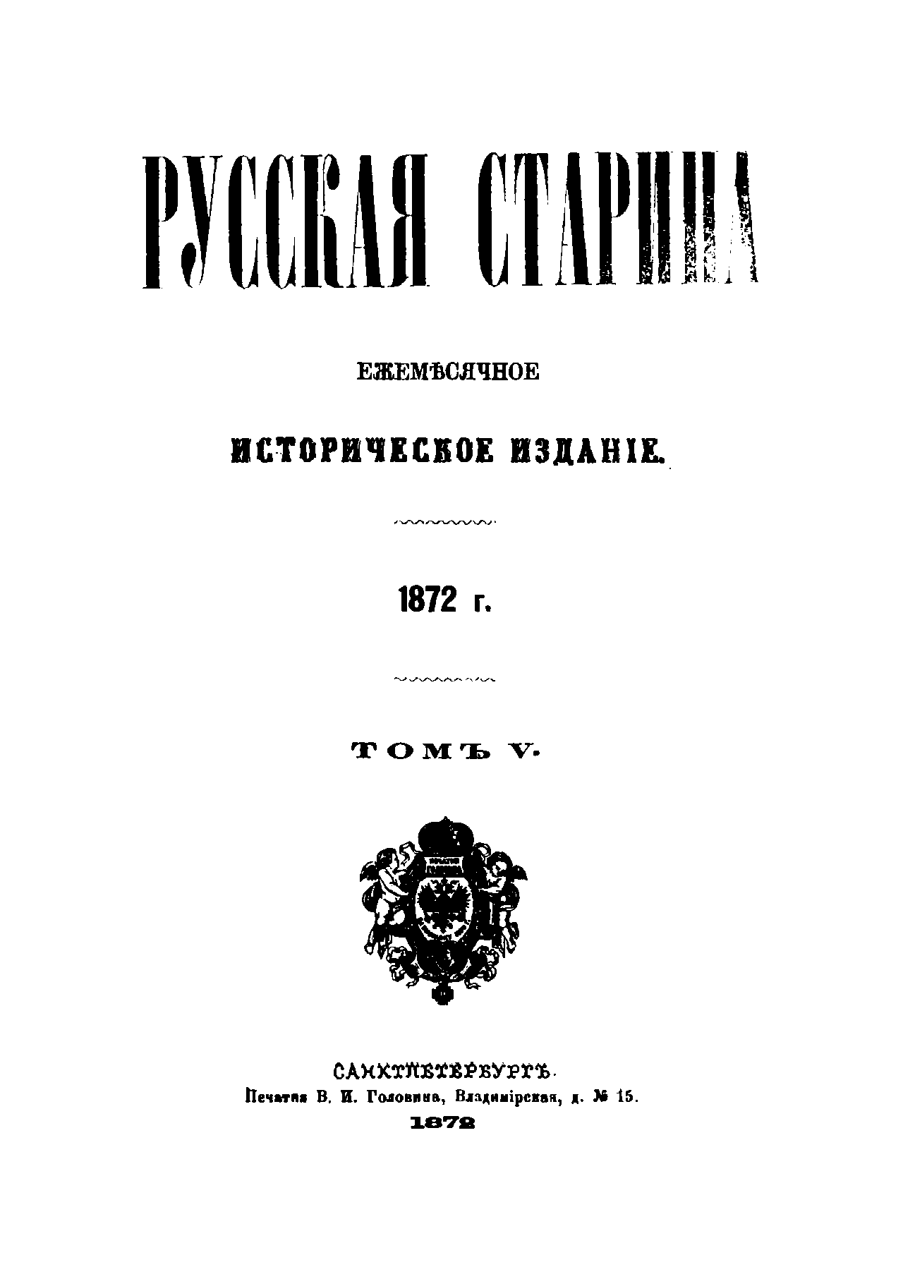 Русская старина. Томъ V. 1872. Выпуски 1-6