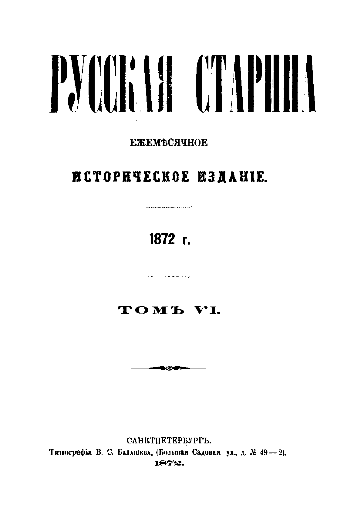 Русская старина. Томъ VI. 1872. Выпуски 7-12