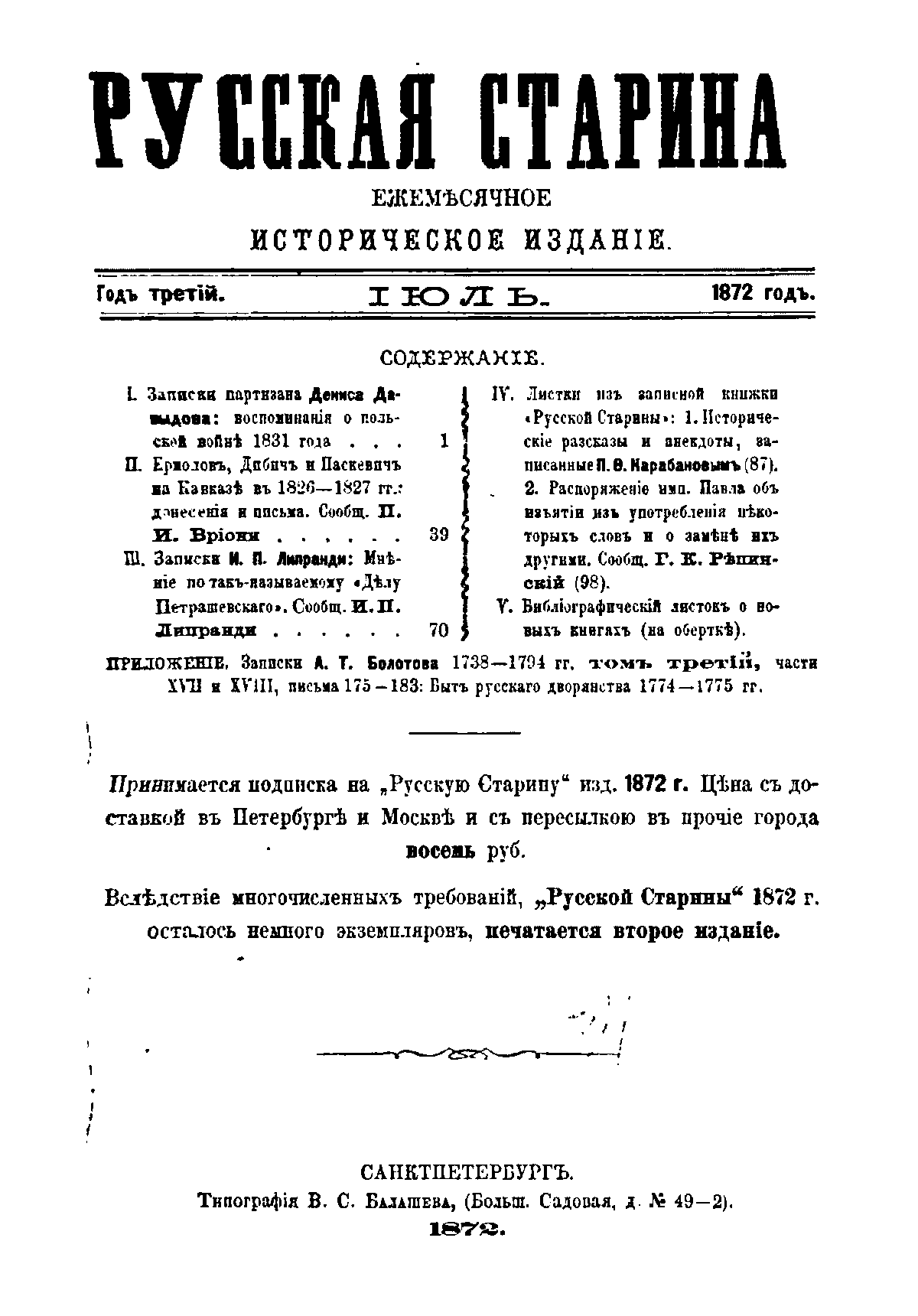 Русская старина. Том VI. 1872. Выпуски 7-12