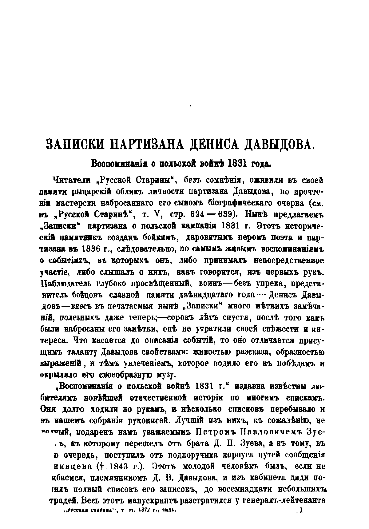 «Русская старина», ежемесячный исторический журнал, выходил в Петербурге в 1870-1918. Основан, издавался и редактировался (1870-1892) М. И. Семевским при участии В. И. Семевского. Последующими редакторами были Н. К. Шильдер (1892-1896), Н. Ф. Дубровин (1896-1904), военные историки С. П. Зыков, П. Н. Воронов.