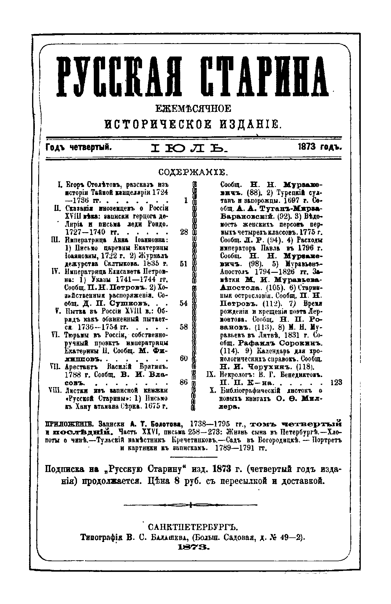 Русская старина. Том VIII. 1873. Выпуски 7-12