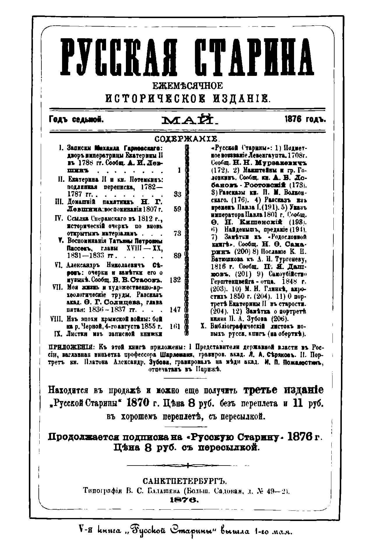 Русская старина. Томъ XVI. 1876. Выпуски 5-8