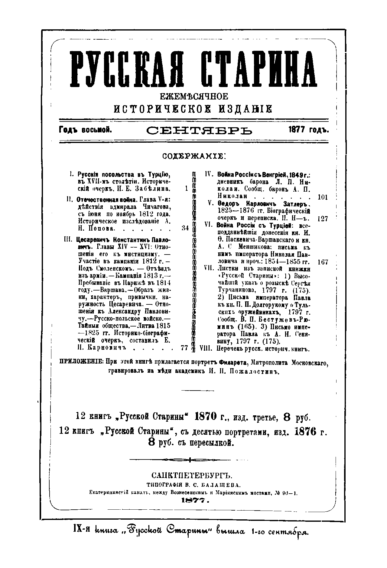 Русская старина. Том XX. 1877. Выпуски 9-12