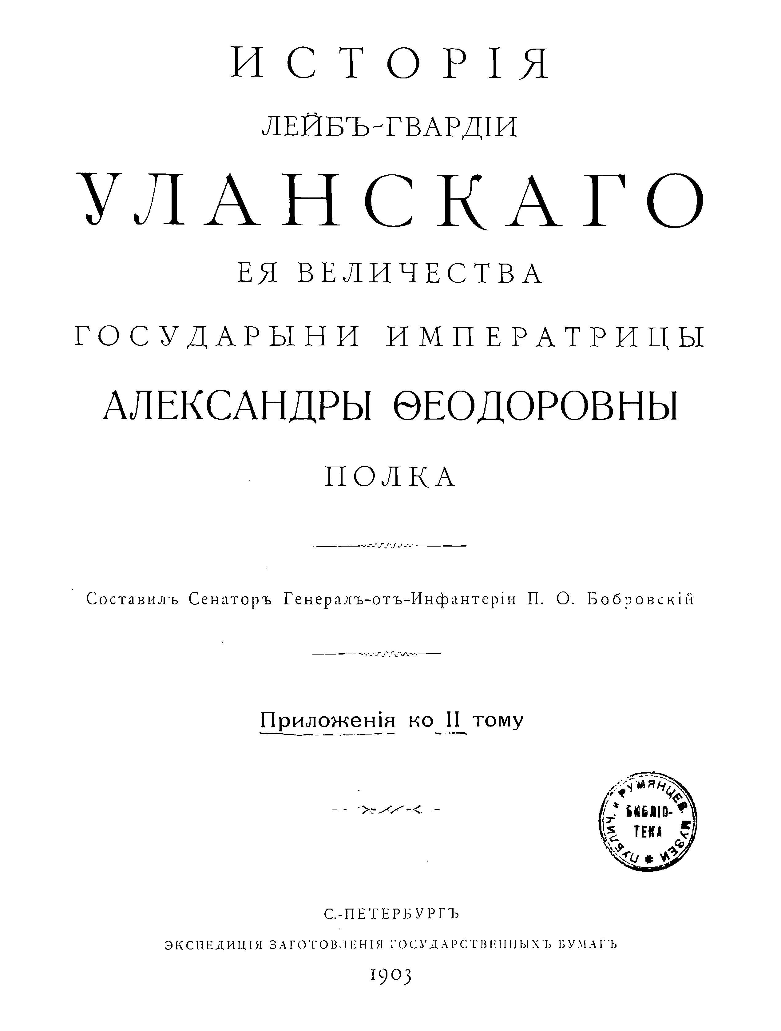 Исторiя Лейбъ-гвардiи Уланскаго Ея Величества Государыни Императрицы Александры ѳедоровны полка. Приложенiя ко II тому
