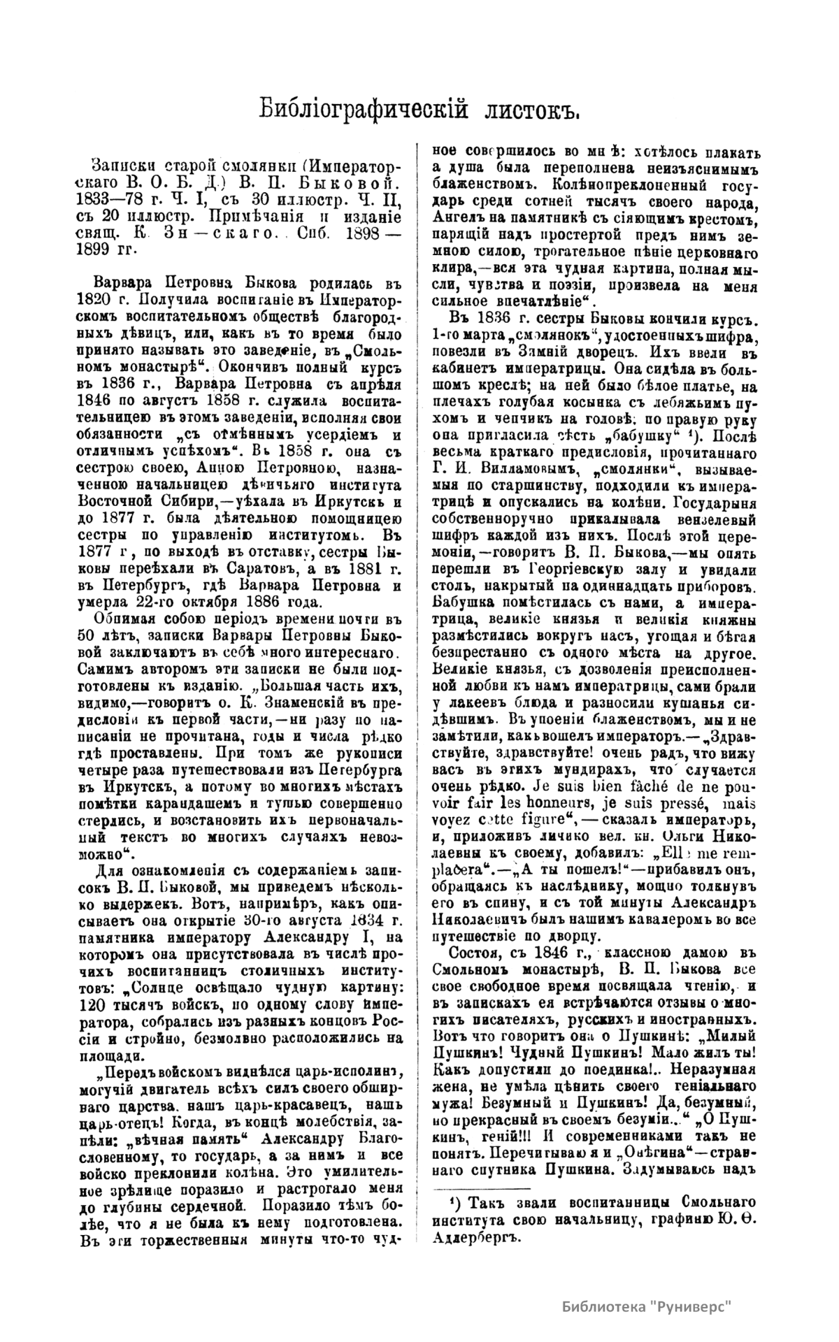 Крупным вкладом в журнал явились записки и дневник А. В. Никитенко (1888-1892), а также записки Н. И. Пирогова (1884-1885, 1887).