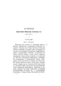 «История царствования императора Александра I и России в его время» вышла в свет в 1869–1871 гг. Ее автор, Богданович Модест Иванович (1805–1882), — генерал-лейтенант, военный писатель. В 1831 г. участвовал в сражениях под Вавром, Гроховым, Дембе-Вельке и Рагозиным. Пройдя курс в военной академии, занял в ней кафедру военной истории и стратегии, был членом Военного совета, официальным военным историографом. Оставил после себя множество военно-исторических и исторических трудов, в которых интересуется, главным образом, политической историей; его попытки критически отнестись к создавшимся легендам были встречены официальными историками весьма недоброжелательно. Повествование разделено на две части: первая, заключающаяся в I–IV томах, охватывает события 1801–1815 гг.; вторая — V, VI тома — содержит исторический период после 1815 г. до кончины Александра I в 1825 г. При создании книги Богданович использовал сведения из государственных архивов, а также до того не издававшиеся документы: бумаги императора Александра I, графа П. А. Строганова, записки адмирала А. С. Шишкова, журнал морских походов Д. Н. Сенявина и др. Полный список источников, печатных книг и рукописей, приведен в конце шестого тома. Богатый фактический материал иллюстрируют карты театров военных действий и планы главных сражений.