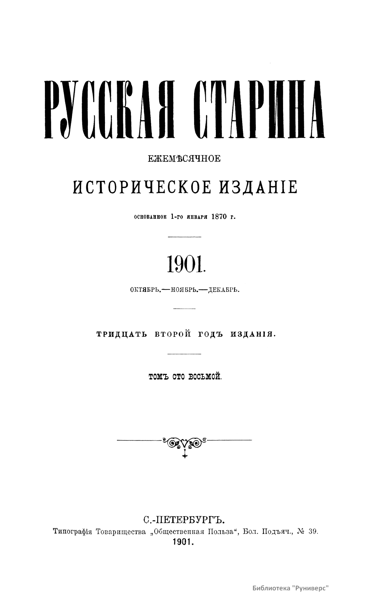 Русская старина. Томъ CVIII. 1901. Выпуски 10-12
